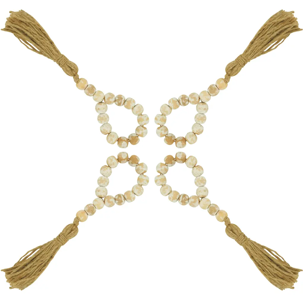 Wood Bead Tassel Napkin Ring, Set Of 4 - Natural