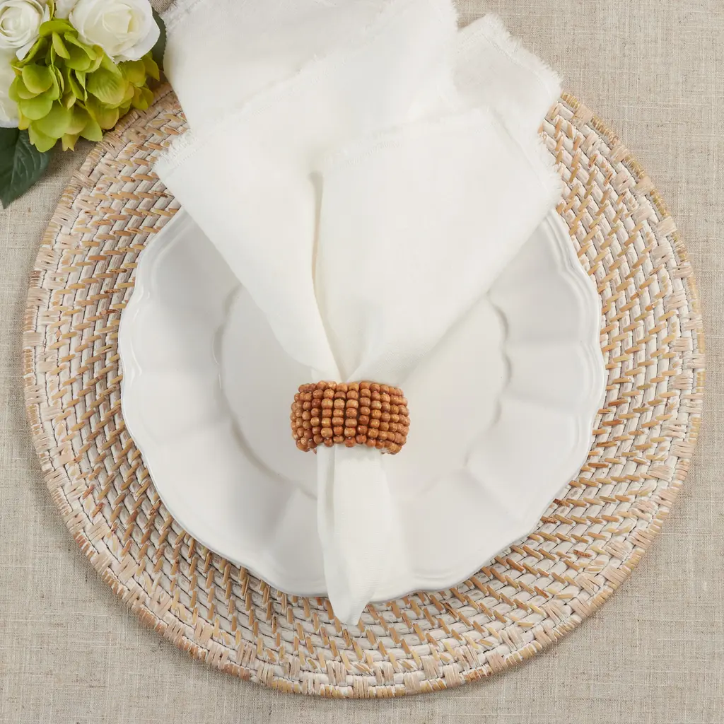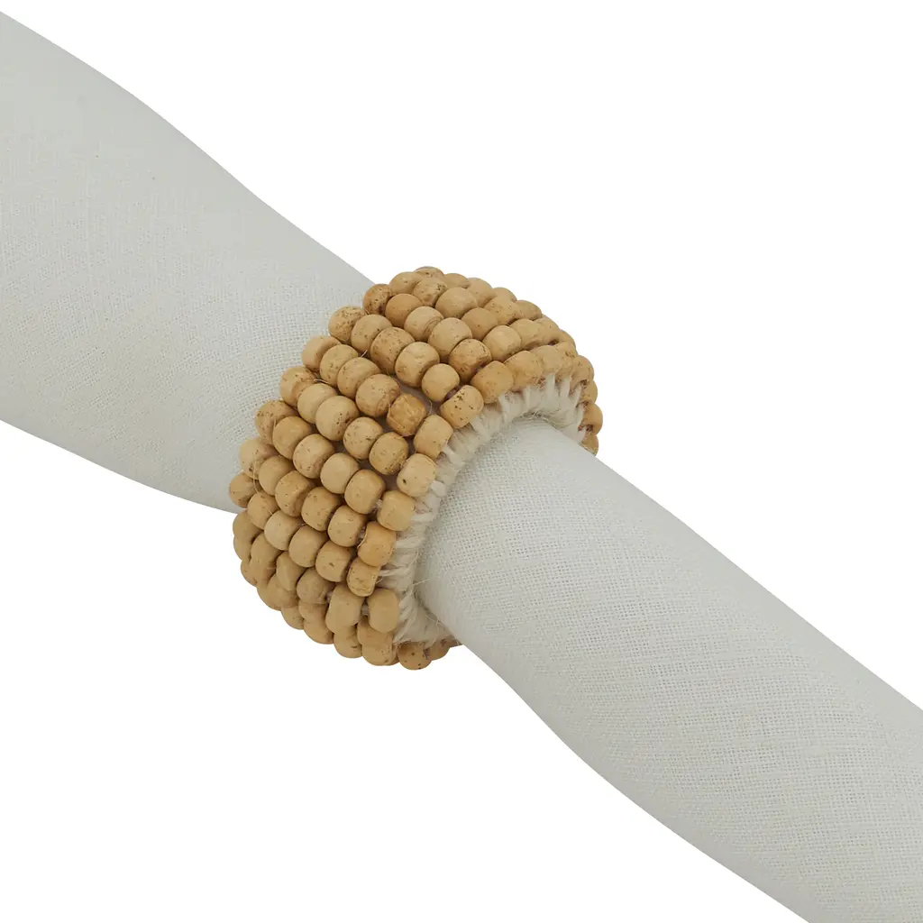 Wooden Bead Napkin Ring, Set Of 4 - Ivory