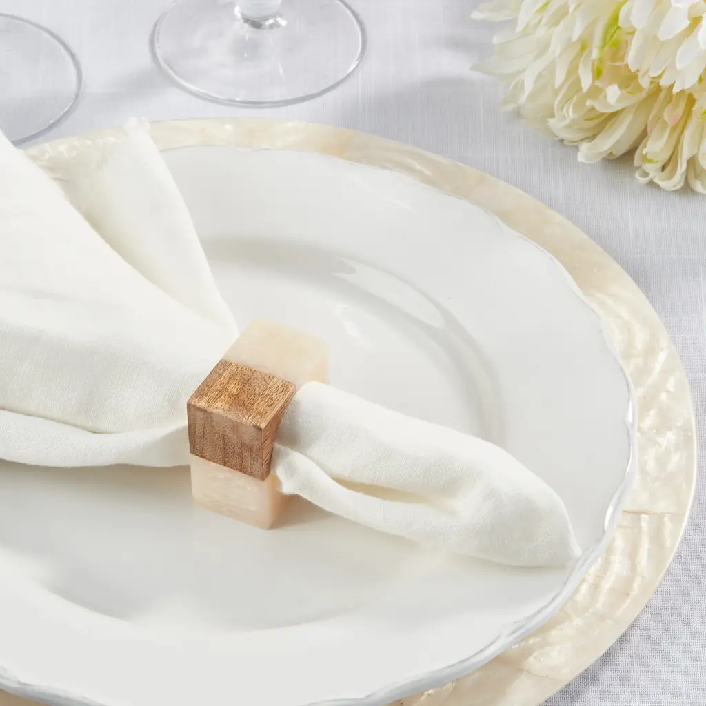 Wooden Fusion Resin Napkin Ring, Set Of 4 - Ivory