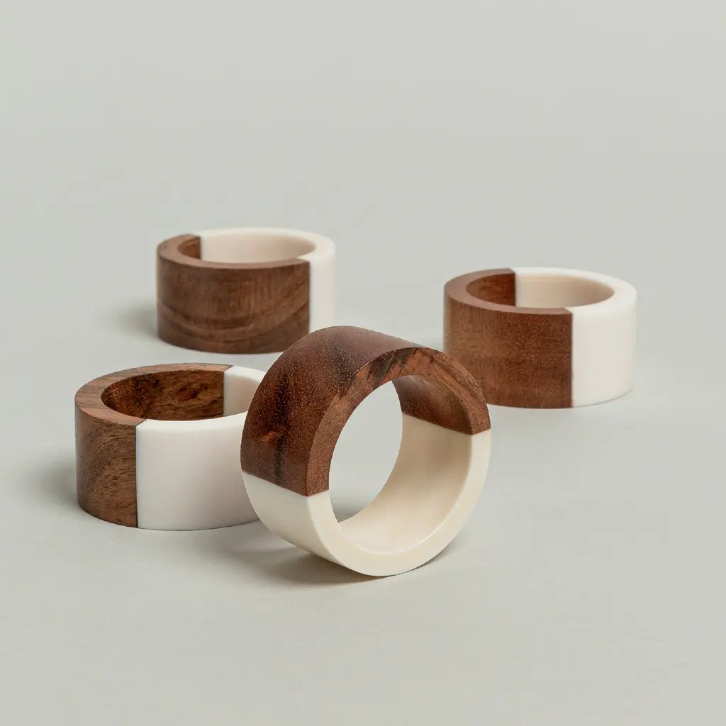Wooden Fusion Resin Napkin Ring (Set Of 4) - Ivory - Set Of 4