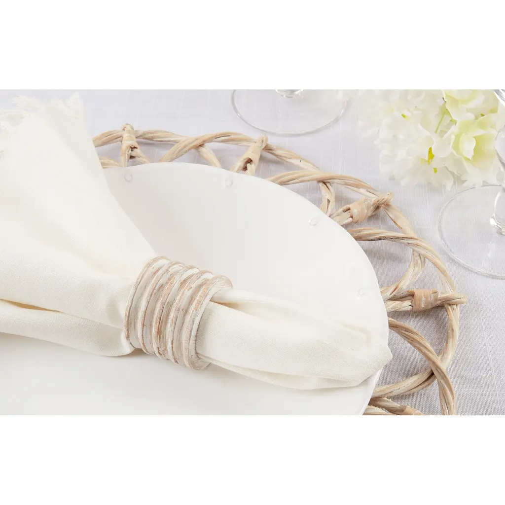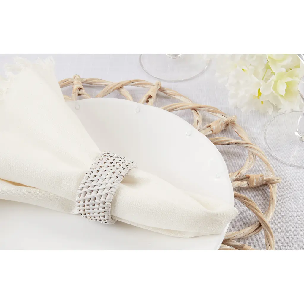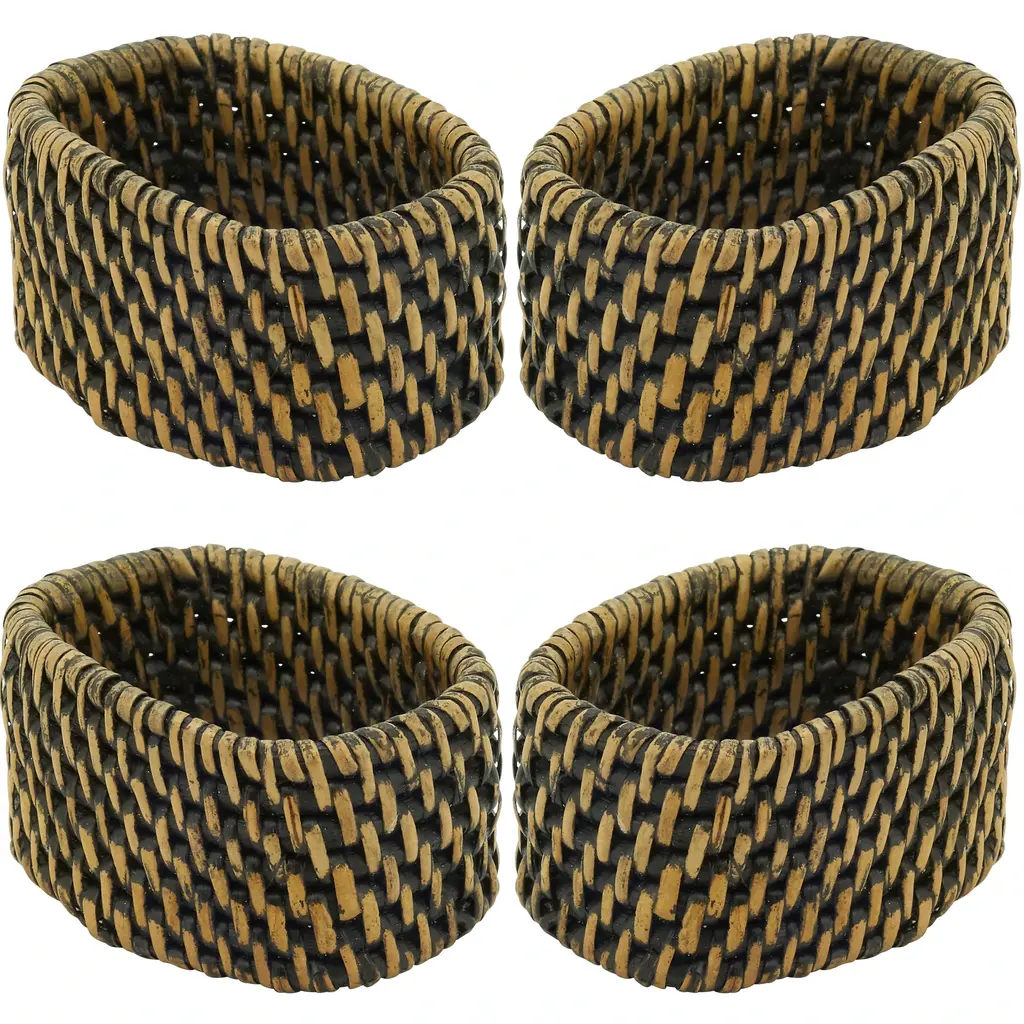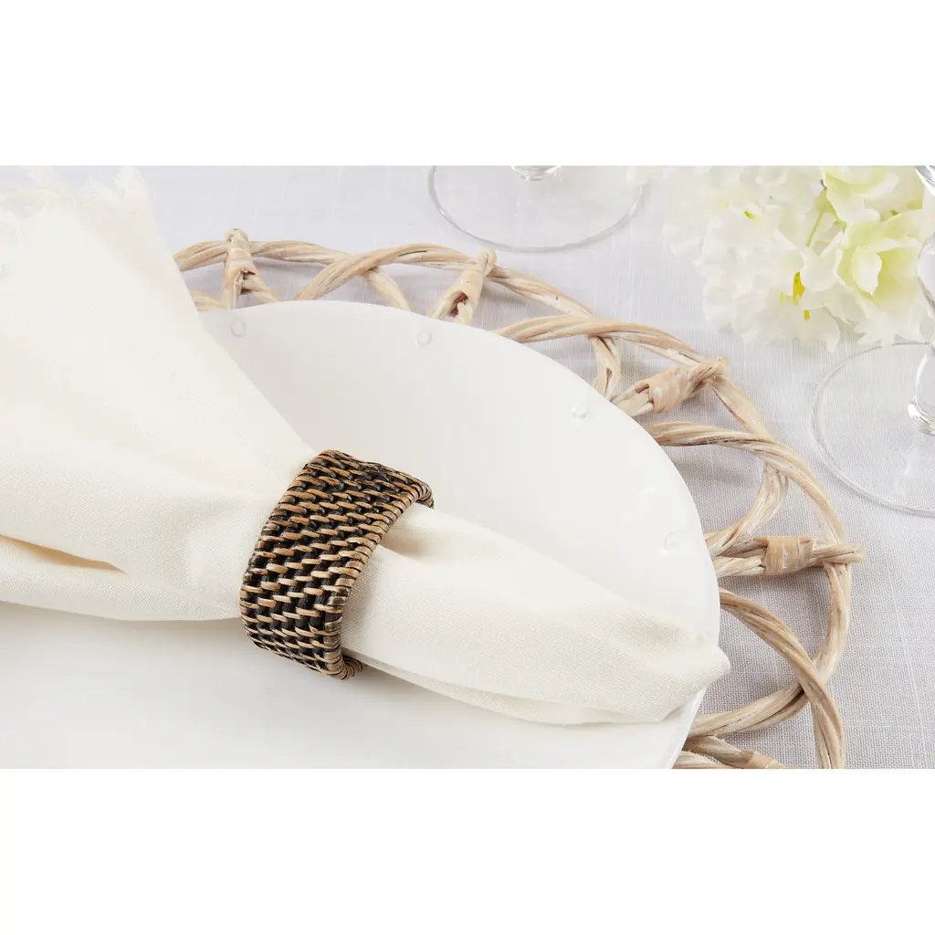 The perfect choice for casual entertaining and outdoor dinner parties, these Woven Rattan Napkin Rings will bring beautiful texture and dimension to your place settings. Easy to pair with flax linen napkins and stoneware plates, as well as a wide range of other tableware, this set is highly versatile. The rings are made with 100 percent rattan, which lends a natural style.Features: