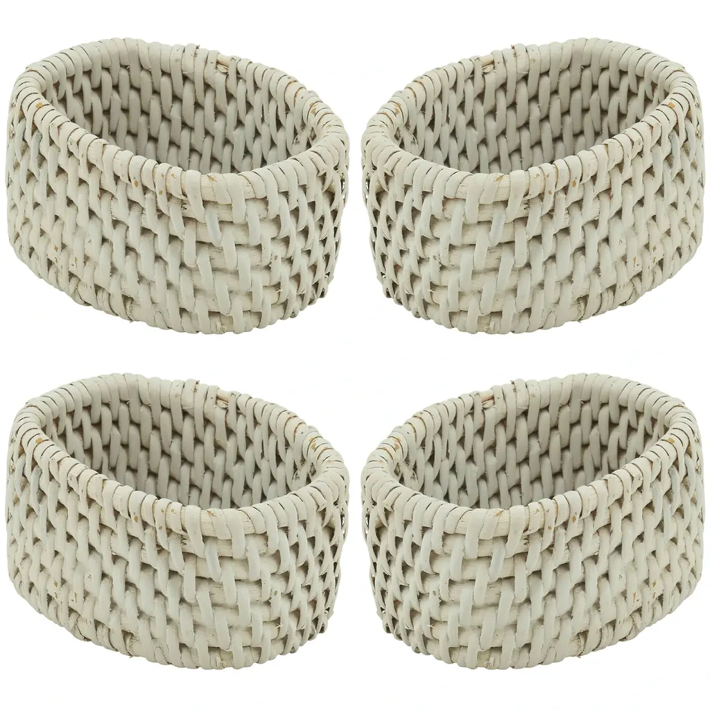 Woven Design Rattan Napkin Rings (Set Of 4) - Set Of 4 - White