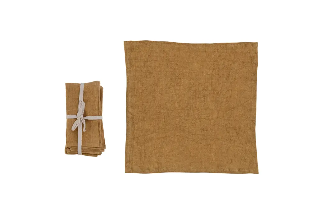 18" Square Stonewashed Linen Dinner Napkins, Olive, Set Of 4, Mustard