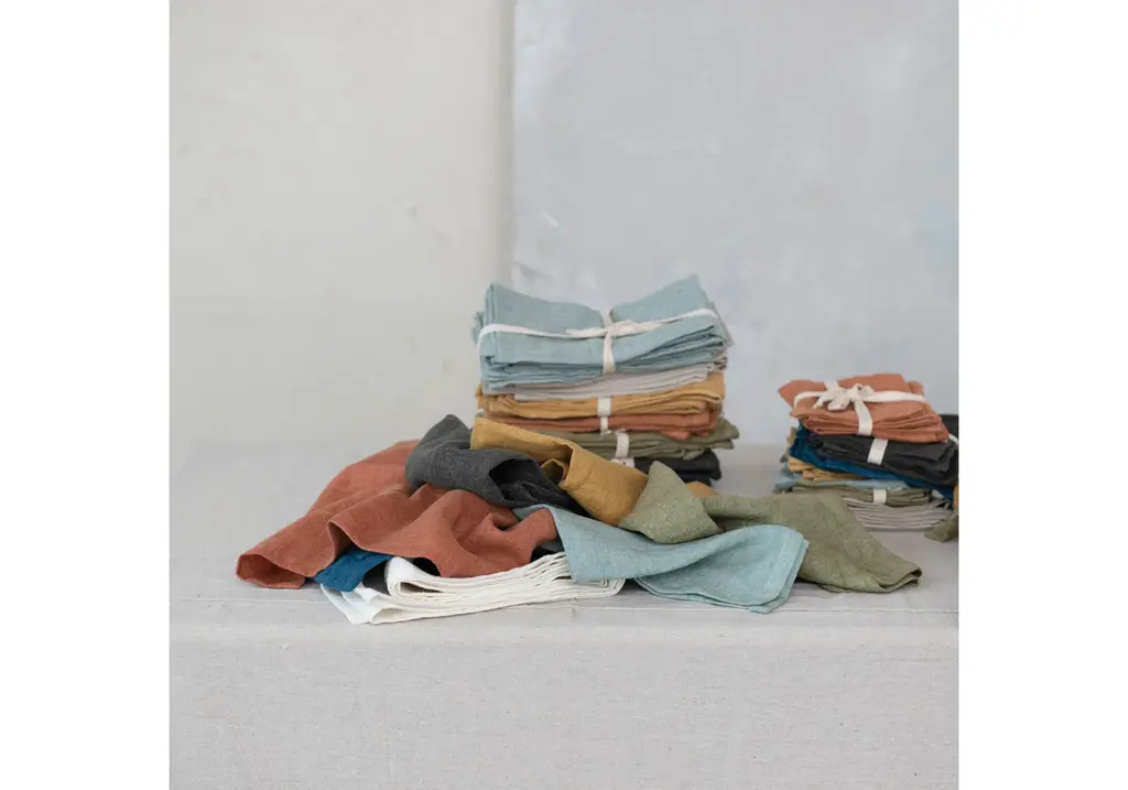 For those who love to entertain and impress their guests, a collection of textiles that can add some style and flair to the kitchen and dining table is essential. Whether they want to protect their clothes, hands, and surfaces from spills and heat, or create a stunning table setting with napkins and runners, there are the perfect textiles for them. They can choose from a wide range of shapes, sizes, designs, and materials such as cotton, linen, polyester, and bamboo. They can mix and match them to create their own unique style or choose a matching set for a harmonious look. No matter what they choose, they can be sure that the textiles are high-quality, durable, and easy to clean.These versatile napkins adds a touch of sophistication to any occasion, whether it's a festive party or everyday use in the kitchenPurely made from LinenOffers a soft and textured feel, a simple and classic square shape, a variety of colors to suit every style and mood, and a sleek and neat design without any knots, stripes, or tiesSuitable for various home decor styles, including modern, rustic, and farmhouse, perfect for entertaining guests, adding a refined touch to cocktail parties, dinner gatherings, or special eventsWith a measurement of 18.0 inches by 18.0 inches