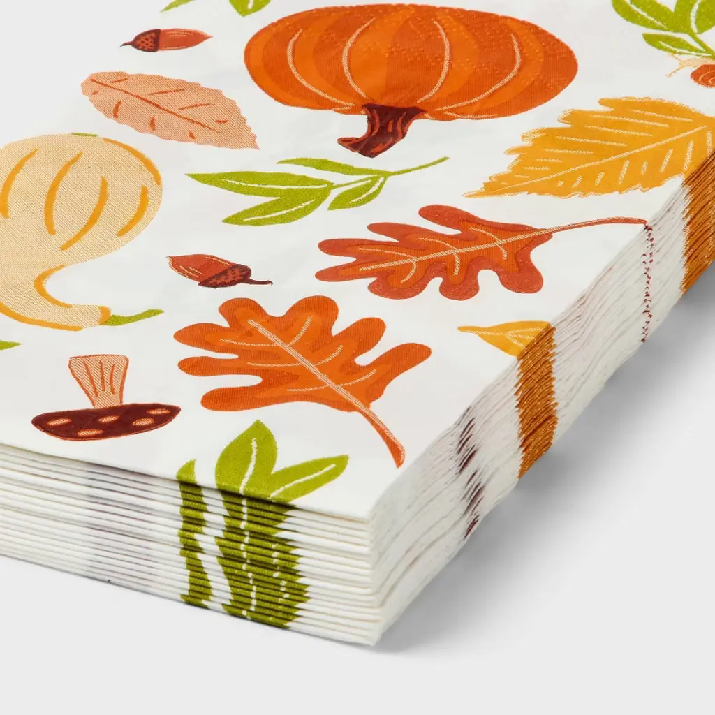 20ct Thanksgiving Harvest Pattern Guest Paper Towel Napkin - Spritz™
