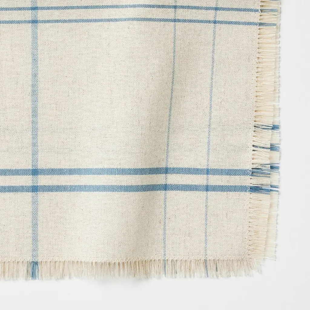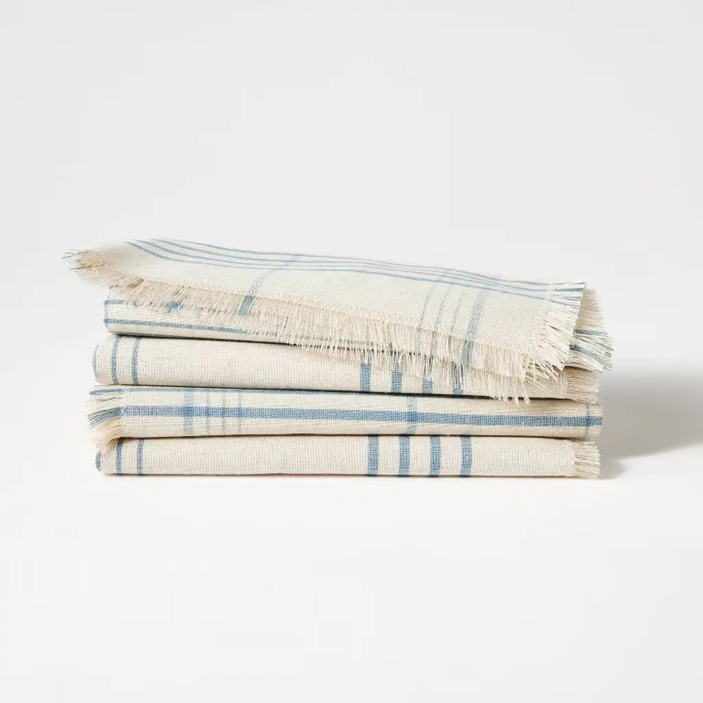 Elevate your dining experience with this 4-Pack of Napkins from Threshold™ designed with Studio McGee. The cloth napkin set includes four square napkins with a blue plaid pattern on a white backdrop and fringed edges for a timeless look that goes well with any table decor. Perfect for everyday use or entertaining, these napkins boast cotton-linen construction, making them great for wiping spills, messes and hands. Simply machine wash for easy care.Threshold™ designed with Studio McGee: Looks like home, feels like you.