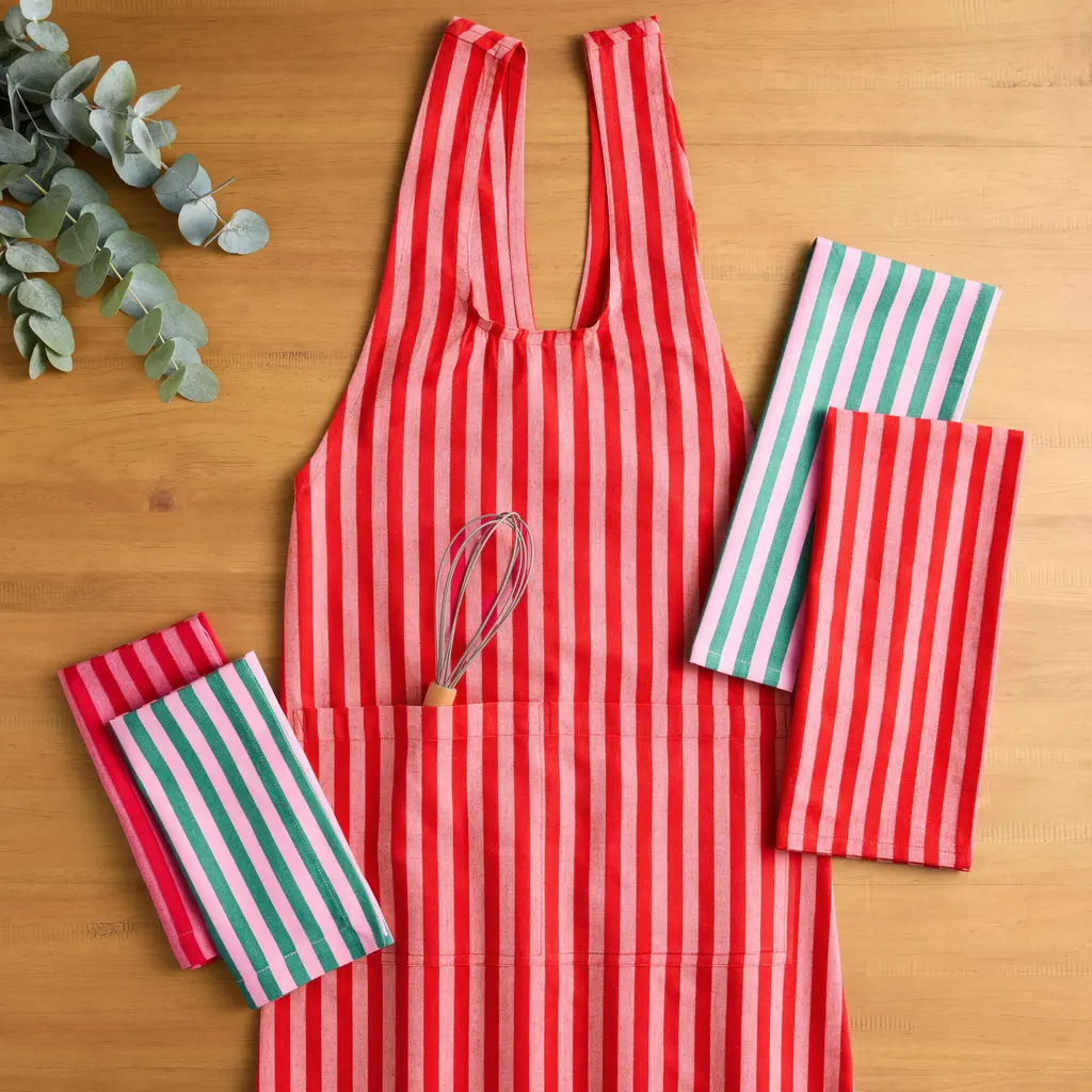 Add a playful pop of color to your place settings with our exclusive striped napkin. Made in India of 100% cotton, this cheerful table linen is available in a choice of charming pink and green, or red and white that mixes to create a pink effect. Perfect for festive entertaining, our napkins lean into modern-retro decor and rustic-cottagecore aesthetics alike.