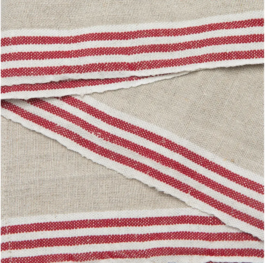 Elevate your dining experience with our Alsace Linen Napkins, designed to infuse classic French country charm into your table setting. Each set includes four napkins featuring a tasteful three-stripe border against a natural linen backdrop, effortlessly enhancing your tablescape. Mix and match these stripes to create your perfect place setting. Bon Appétit!Features:Set of 4 Linen Napkins: Perfectly designed for your gatherings, each set includes four high-quality linen napkins.Easy Care: These napkins are machine-washable, and ironing is optional, ensuring convenience without sacrificing style.Premium Materials: Crafted from 90% Linen and 10% Cotton, these napkins are both luxurious and durable, promising long-lasting quality.