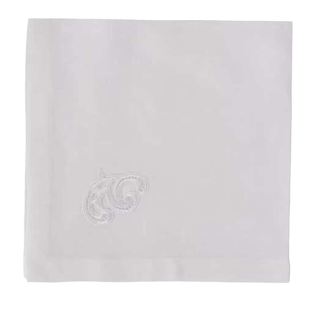 Characterized by a marvelous handmade embroidery made using three different shades of beige enhances the refined design of this set of four napkins, an exclusive and sophisticated addition to a dining table elegantly set for a special day. This exquisite set is deftly handmade of the most precious white linen.