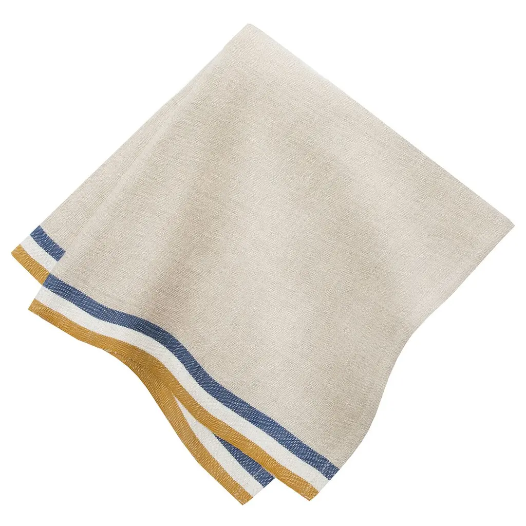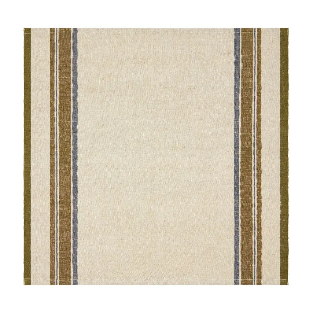 Enhance your dining experience with the Antibes napkins, a perfect blend of style and practicality for both kitchen and dining room settings. Crafted from a luxurious heavyweight linen and cotton blend, these napkins feature a narrow stripe design and a natural color palette, adding a sharp, casual French café look to your table. Available in five beautiful color options and sold in a set of 4, these oversized napkins bring a touch of French country charm with their elegant, luxurious feel. Handmade for a personal touch, the Antibes napkins are easy to care for—simply machine wash and steam in the dryer for effortless upkeep. Elevate your everyday meals with these versatile, easy-care napkins, perfect for any French-inspired décor.