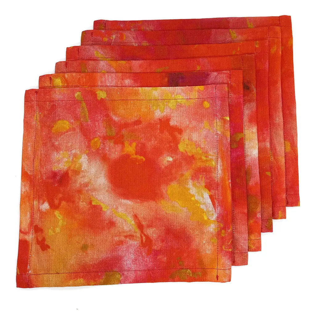 Apollo Set Of 6 Linen Cotton Cocktail Orange Napkins