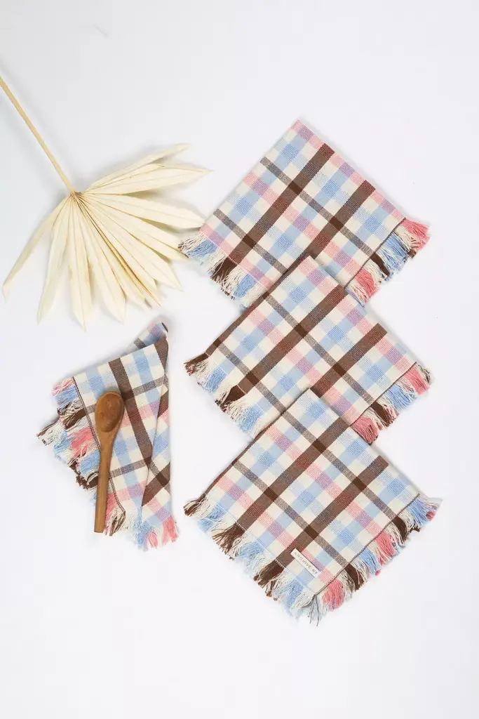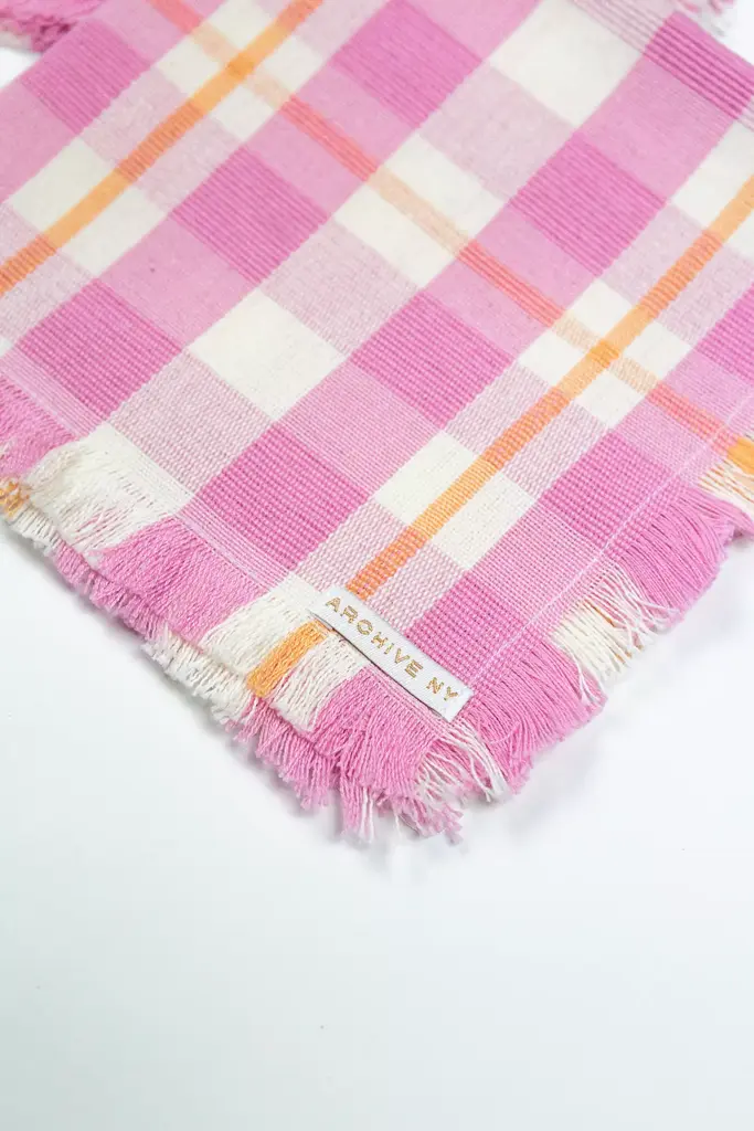 TheAbigail plaid party napkin set is the perfect accent to add color and texture to anytable setting. The party napkin is smaller in size than our dinner napkinand has a fringe around the edges. Stripes of bubblegum, peach, and ivory are woven together to create this brilliantly vibrant piece.Ethically handwoven by artisans in Xela, Guatemala.Archive New York is a line of handwoven, artisan made home decor products, founded in 2014 in Brooklyn, NY. The founder, Amira Marion, grew up in a home filled with Guatemalan textiles gathered by her parents in the 1970s. Her own designs emphasize a deep connection with Central American artisans, a commitment to Fair Trade practices, and the honoring of Maya culture, heritage and technique.* Set of four napkins* Handwoven cotton* Machine wash cold, tumble dry low* Imported#### *Dimensions** 12" x 12"