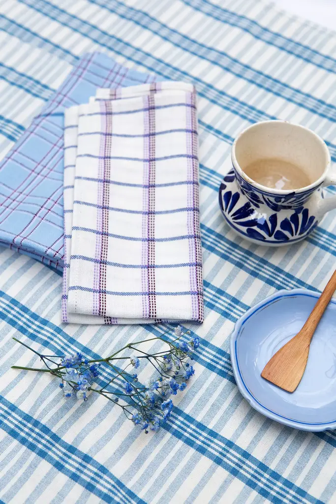 White plaid napkins, ethically handwoven by artisans in Chiapas, Mexico on traditional footlooms. With hints of burgundy, blue and lilac, this updated classic plaid will be a lively addition to any table setting, picnic or dinner party.* Set of four placemats* Handwoven cotton* Machine wash cold, tumble dry low* Imported#### *Dimensions** 18 x 18