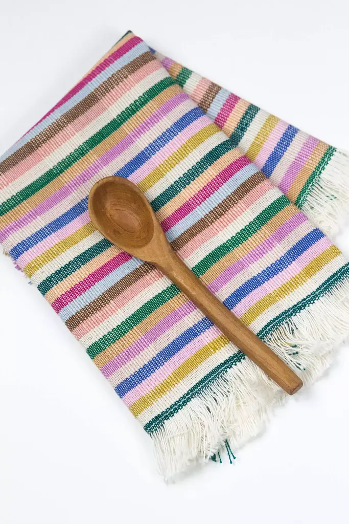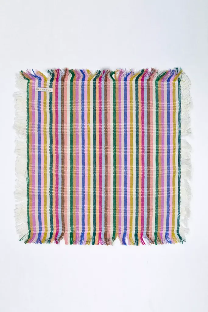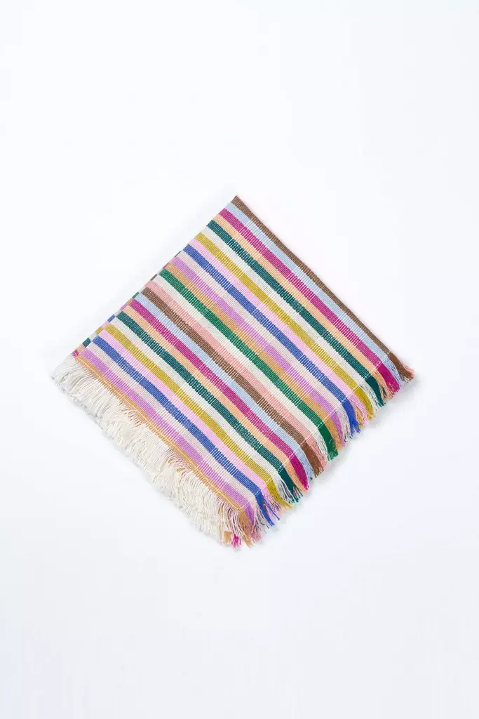 The Valentinarainbowstriped party napkinsarethe perfect rainbow accent to add color and texture to anytable setting. Stripes of light pink, ochre, emerald, lilac, royal blue, umber and fuchsia are woven together to create this brilliantly colorfultextile.Ethically handwoven by artisans in Xela, Guatemala.* Set of four napkins* Handwoven cotton* Machine wash cold, tumble dry low* Imported#### *Dimensions** 12" x 12"