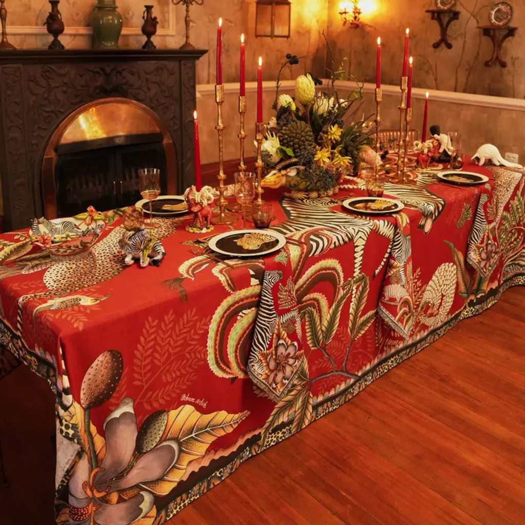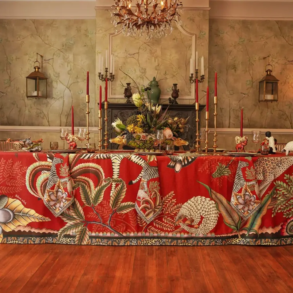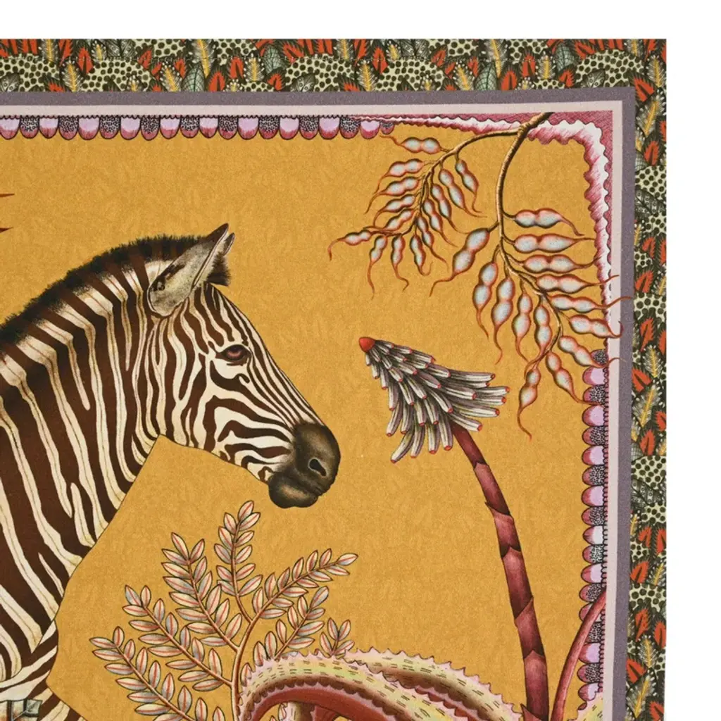 Designed in South Africa by Ardmore design, these napkins are crafted of cotton with a vibrant jungle-inspired pattern and coordinating edges. Featuring intricate artwork which depicts the wildlife of the Zambezi river basin, a leopard sits regally amongst passion flowers and lucky beans, which are associated with magic in Zulu culture. Sold in pairs, our collection of table napkins come in an array of patterns, prints, and colorways, ranging from neutral to wild and wonderful tones, don’t be afraid to mix and match. Every Ardmore napkin is individually cut and sewn in Johannesburg, South Africa.