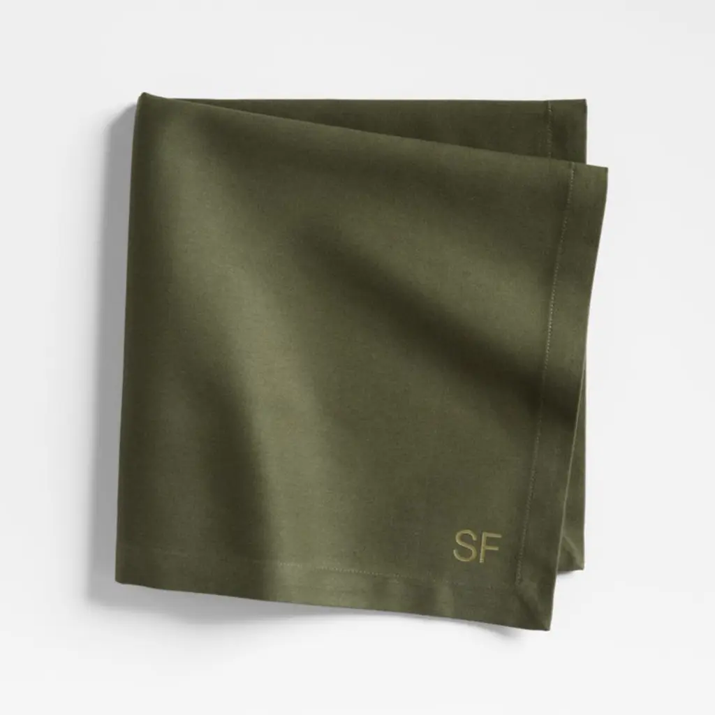 Available in a range of saturated colors and modern neutrals, our Aspen table linens mix and match effortlessly. This organic cotton napkin in a mossy green-brown hue is perfect for chic dinner parties and weeknight family meals and cleans up easily in the washing machine. Tailor-finished with ¾-inch hems and mitered cornersclassic diagonal seaming that creates a crisp cornerthe elegant-yet-easy-care napkin pairs beautifully with modern dinnerware, especially our exclusive Aspen collection.