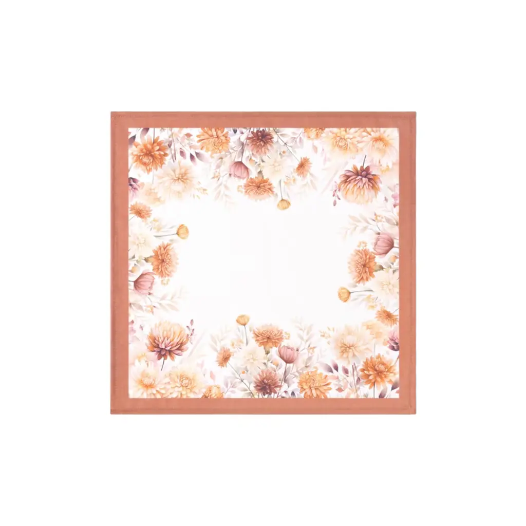Dress your table to give thanks to the season with our Autumn Blooms Napkin Set. Inspired by the harvest, these elegant printed, reusable napkins feature beautiful mums and other florals in a mix of golden fall colors over a neutral, beige ground with an amber border design. Excellent for Thanksgiving dinner, special occasions, events, parties, family gatherings and everyday use throughout the fall season. Soft and durable fabric can be ironed to release stubborn creases and keep your napkins wrinkle free. Hemmed edges add a finished look and prevent wear and tear. Napkins are sold as a set of four, each measuring 17 inches by 17 inches. 100% Polyester. Easy care, machine washable. Coordinate to the Autumn Blooms tablecloth, placemats and table runner to complete the look.