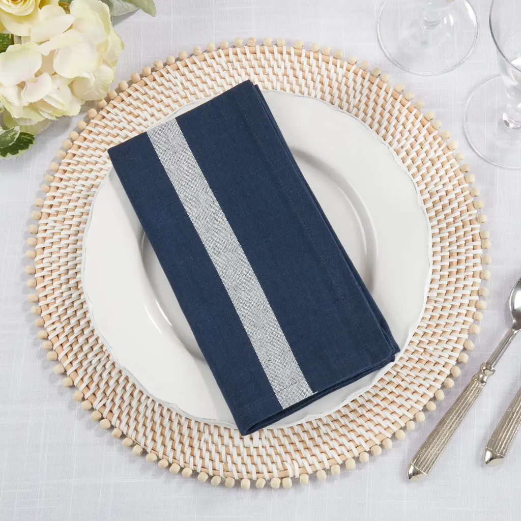 Add a stylish finishing touch to each place setting around your table with this beautiful set of Banded Table Napkins. They bring a chic note whether you fold them or use with a napkin ring. This set has a clean, modern design and is easy to style with a wide range of dinnerware and decor accents.