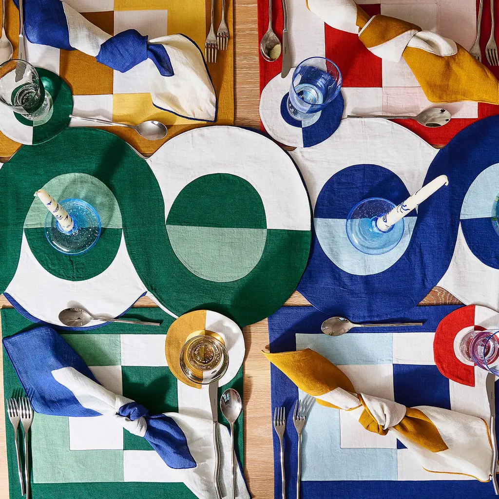 Introduce modern artistry to your tablescape with the Bauhaus Embroidered Linen Napkin (Set of 4) from Misette. These bold and vibrant napkins, part of our Spring 2025 Celestial Collection, feature striking geometric designs and carefully selected Pantone-matched hues. Perfect for pairing with our tableware and linens, they effortlessly elevate any tablescape. Highlights