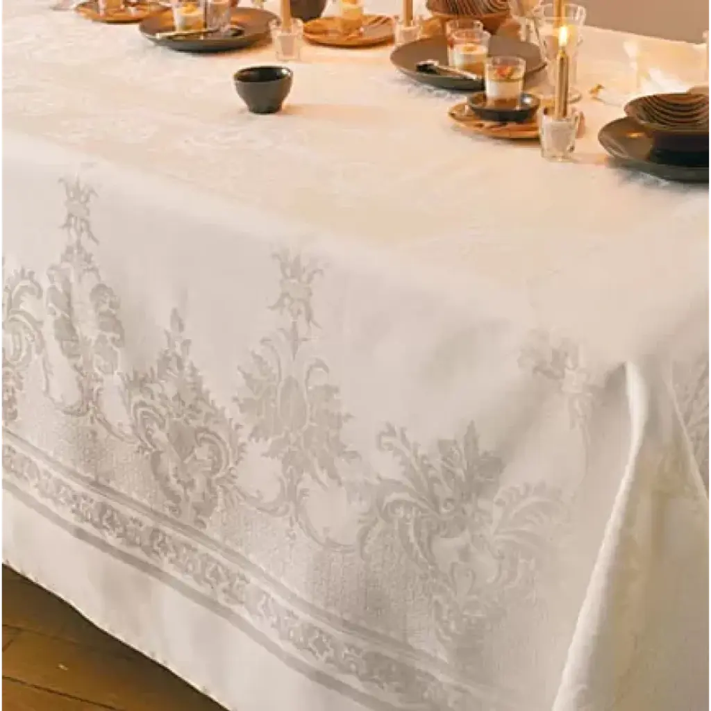 Beauregard Ivory table linens feature an extravagant framed design with intricate scrolled detailing at the borders. Woven on soft, 100% cotton. Mitered corners with plain hems. Machine wash and dry. Made in France by Garnier-Thiebaut. Style: Damask. Established in 1870, Garnier-Thiebaut is a renowned brand in French linens. Selected clients include the Four Seasons George V in Paris, the Mandarin Oriental in Geneva, The Ritz Carlton, Manama (Bahrain), Le Meridien Bora Bora, the Four Seasons Hotel, New York, and The French Laundry in Yountville. Garnier-Thiebaut designs range from classic neutrals to vividly bright jacquards. Every item from the company is woven with the Garnier-Thiebaut trademark. Since 1870, Garnier-Thiebaut has created classic and jacquard linens in the quintessential French style. Their linens have been used by the Four Seasons George V in Paris, the Mandarin Oriental Hotel in Geneva, The Ritz Carlton, Manama (Bahrain), Le Meridien Bora Bora, the Four Seasons Hotel, New York, and The French Laundry in Yountville.
