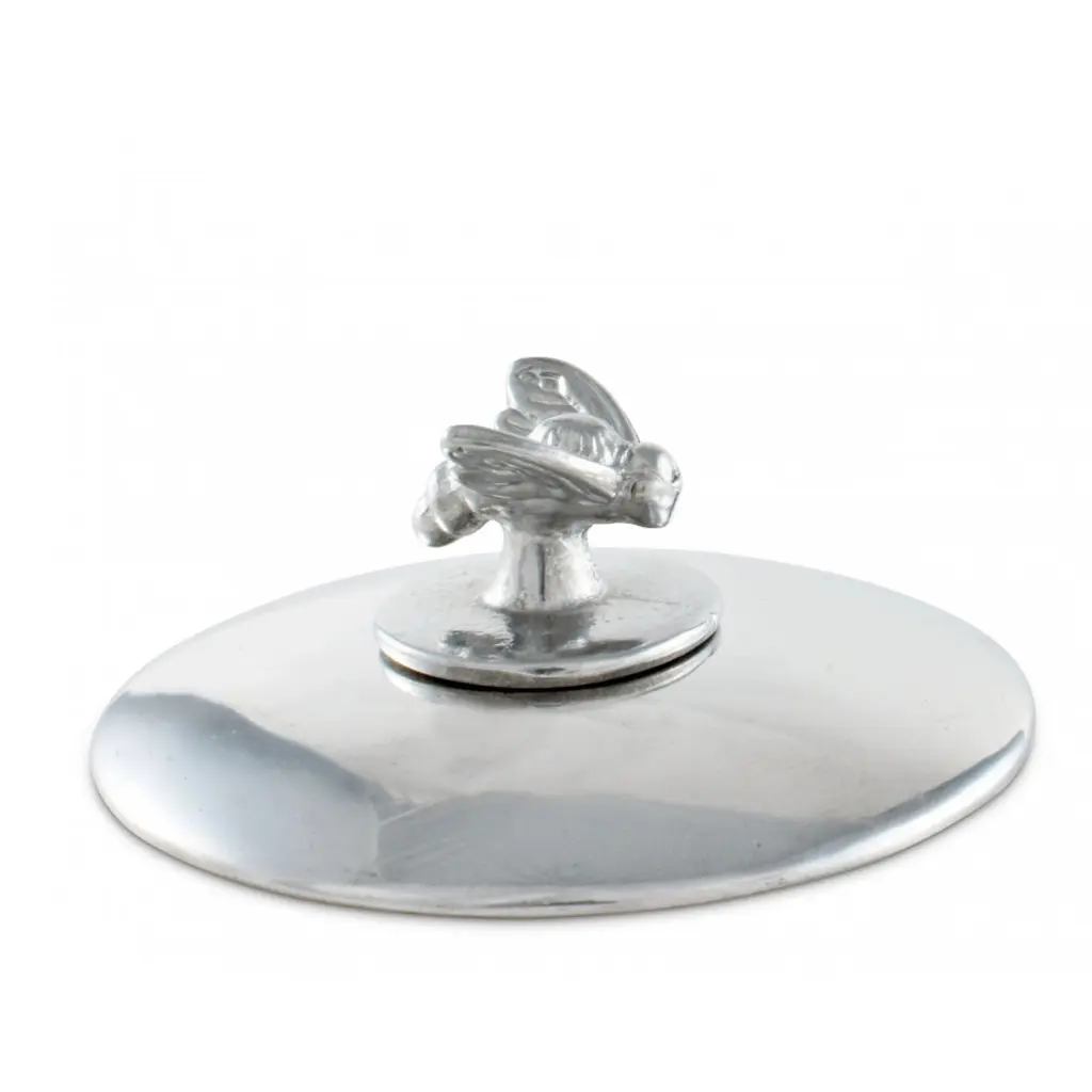 A detailed little aluminum honey bee at rest provides finial / handle for this lovely, hand-crafted nature theme napkin weight. Anchored by a 3.5-inch aluminum disk to provide ample cover and weight to keep a stack of napkins orderly even when enjoying a breezy al fresco gathering. Please Note: Napkin Box sold separately