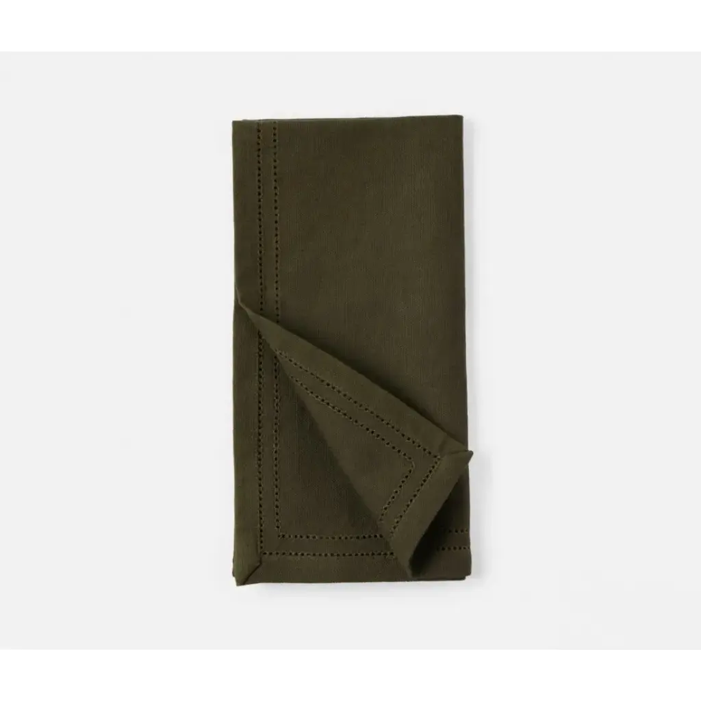 Betty Dark Olive, Double Eyelet, Cocktail Napkin, Cotton Canvas, 10x10, Pack Of 4