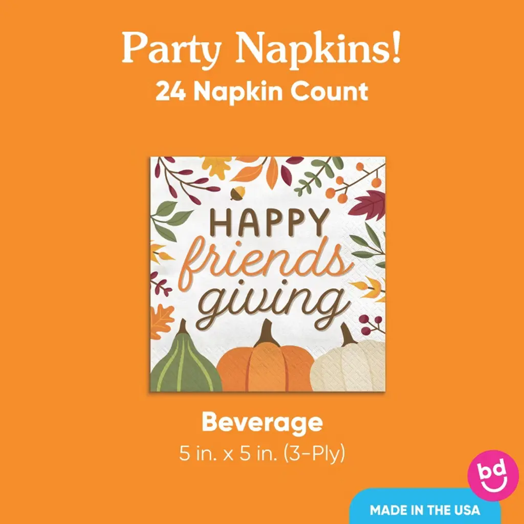 Big Dot Of Happiness Fall Friends Thanksgiving Napkins, Friendsgiving Party Decor, White 3-ply Paper Beverage Cocktail Napkins - 24 Count