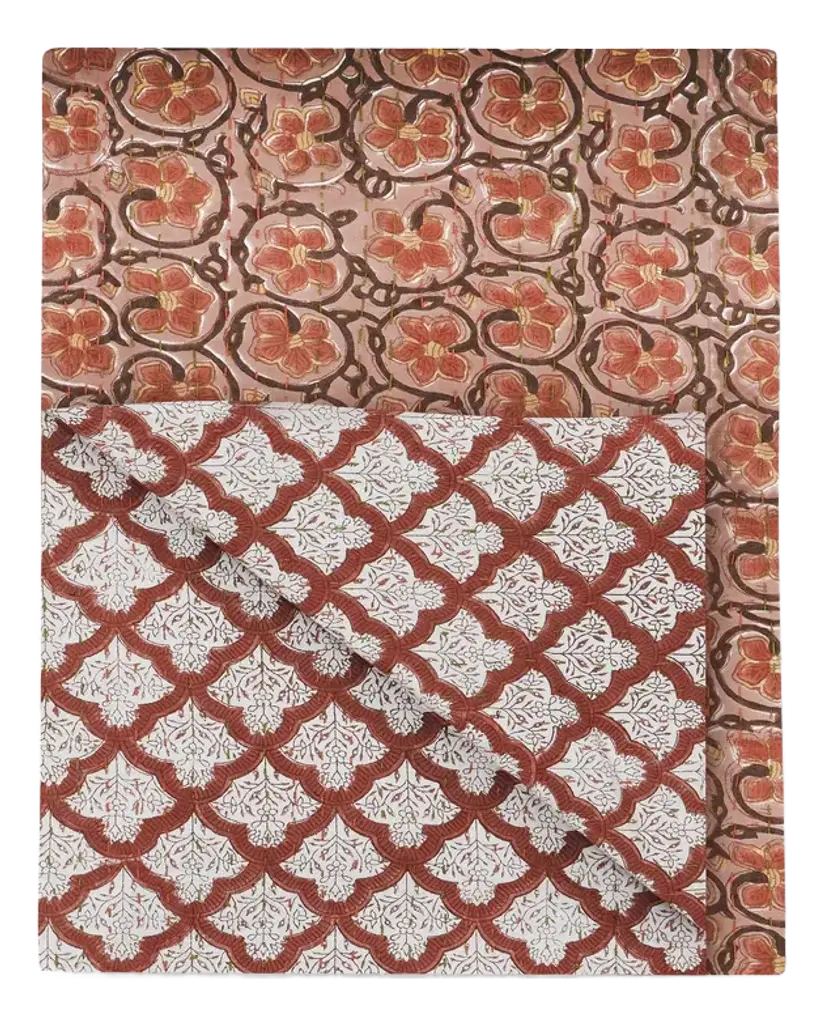 Block Print Leaves Coral/fuchsia Cotton Napkin Set Of 4