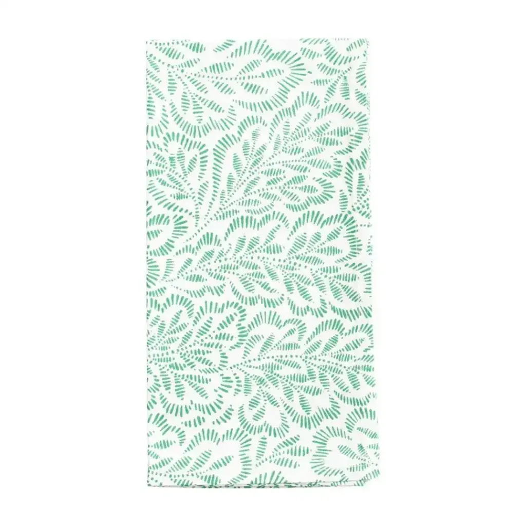 Block Print Leaves Green/white Cotton Napkin Set Of 4