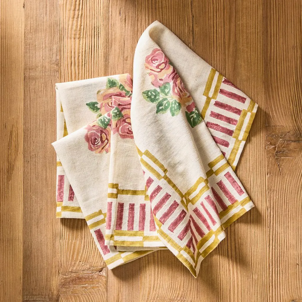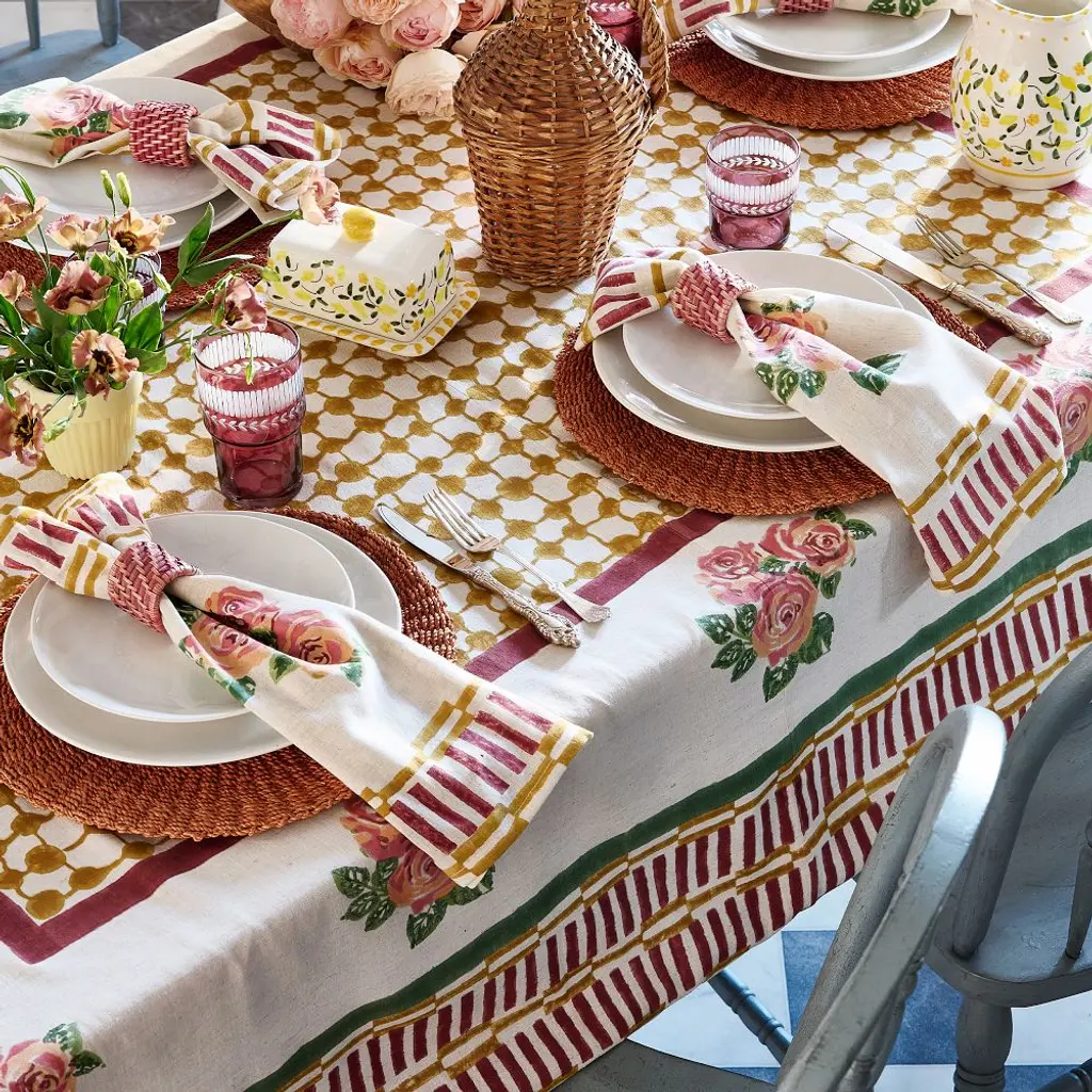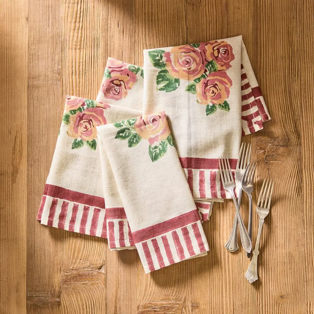 Heirloom variety. In a pattern of checkered stripes and climbing vines, this OEKO TEX® certified napkin set evokes a garden party in Provence.