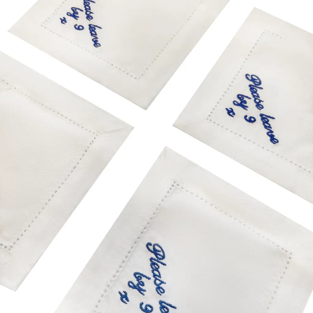 Set of 4Pop the champagne with these Embroidered cocktail Napkins to your soiree! They'll make the perfect accompaniment to whatever concoction you choose -- Please Leave By Nine