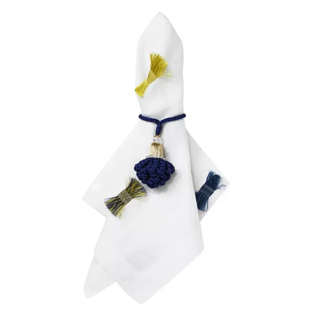 Bora Bora Blue/mustard Bows On White Set Of 4 Napkins 20 X 20 In