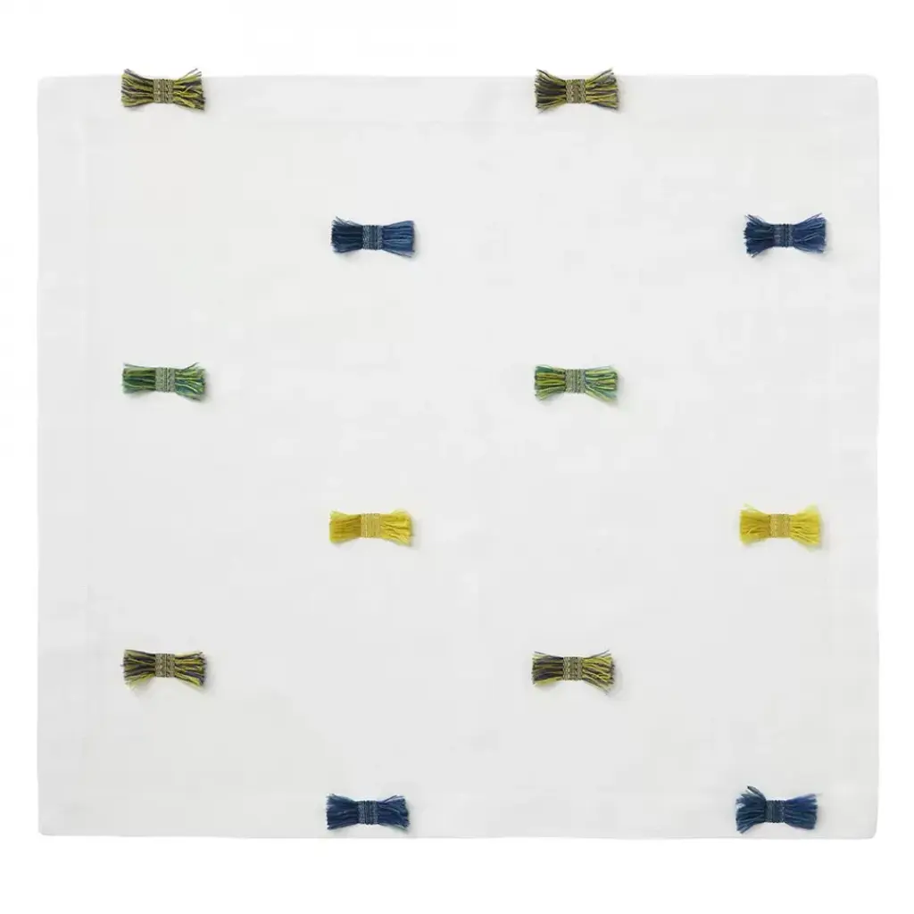 Colorful bows create a blissful atmosphere, dressing your table to utmost perfection. Available in Fuchsia-orange-blue, or blue-green.