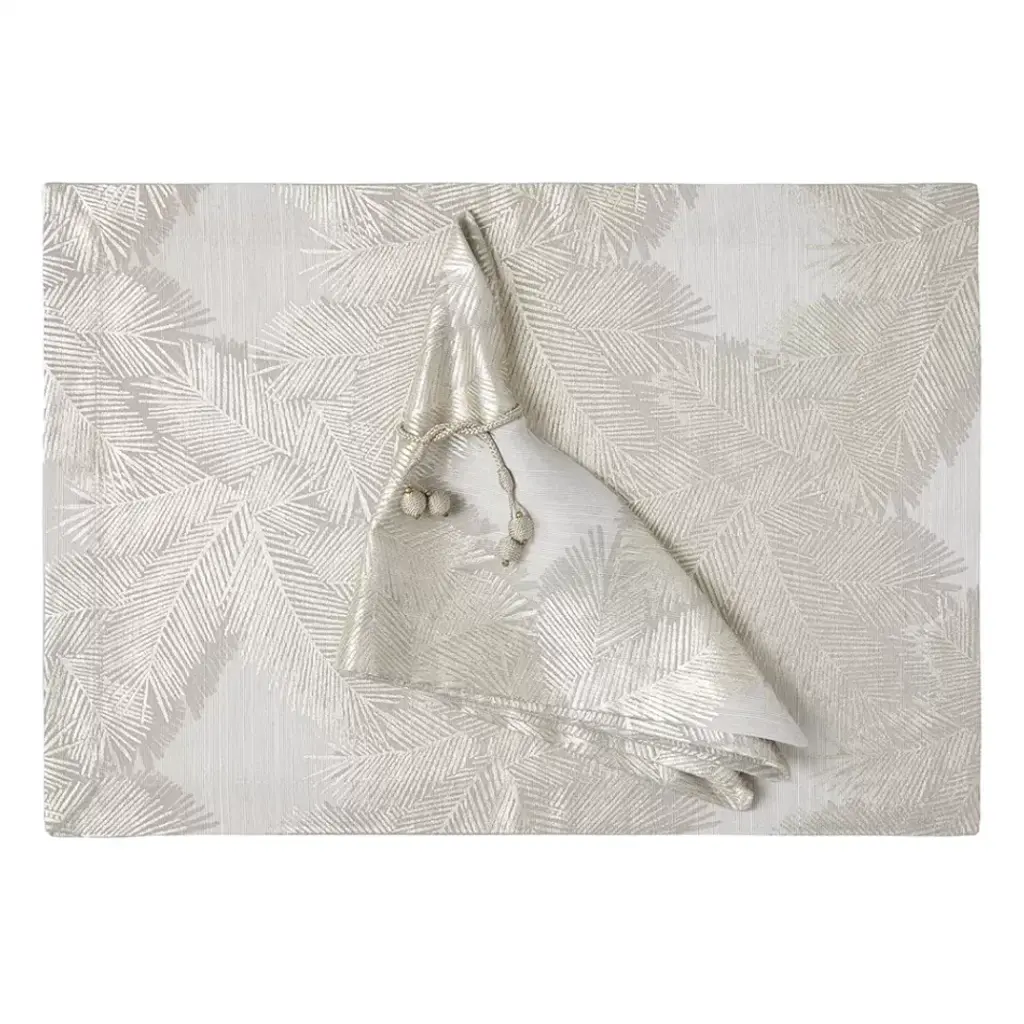 Botanical design with a metallic sheen transports you and your guests to a glamorous island and creates a festive atmosphere for your table. Pairs nicely with matching placemat, or mix and match with Venice or Antibes placemat.