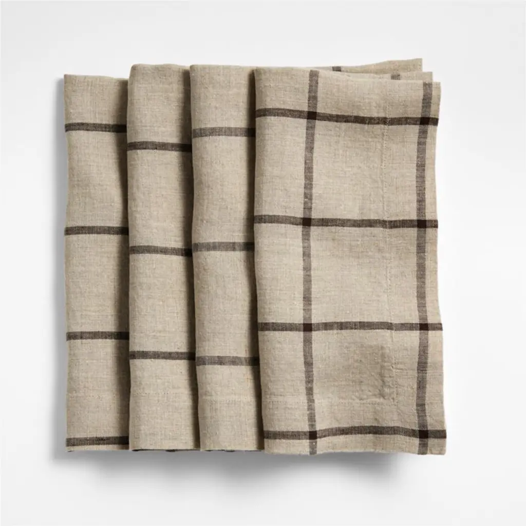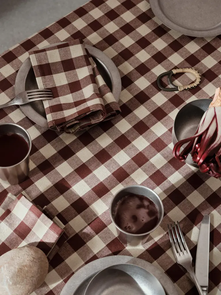 Embracing the spirit of bothys, simple shelters found in the wilderness of the Scottish Highlands, the Bothy collection features textiles with a classic check pattern. This series celebrates the peaceful lifestyle and joy of life's fundamental delights, echoing the serene essence of these highland retreats. This set of four napkins is made from GOTS certified, organic cotton and comes in a matching drawstring bag.