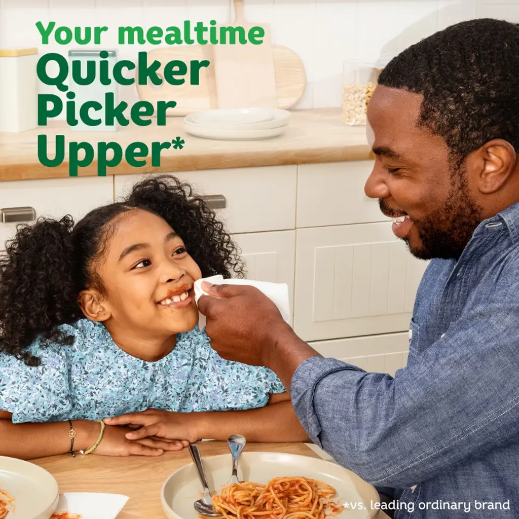 Don't let mealtime messes get in the way of your family meals! Bounty Napkins pick up messes quicker* so you can get back to enjoying time with your family. Whether it's saucy wings or spaghetti splashes, Bounty Napkins will keep you covered through the whole meal. The 12.1" x 12" napkins are the perfect size to get your family through messes and spills. From family dinners to big celebrations, Bounty Napkins are designed to hold up for any occasion. They're tough on those messy meals so they don't mess with you.*vs. leading ordinary brand