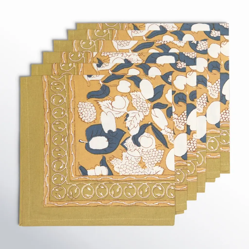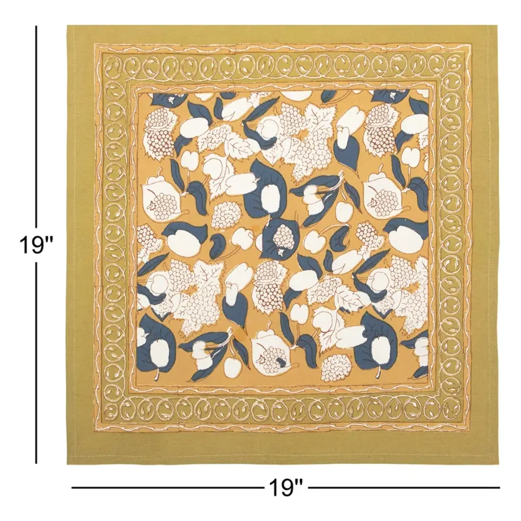 With a nod to the lush splendor of Provençal forests, these Forest Harvest napkins feature an array of sumptuous fruit amidst richly entwined foliage. The twirling vines and blossoming imagery make a pleasing backdrop to any meal, and every high-quality cotton is hand-printed by skilled artisans using a time-honored technique, resulting in a singular piece of craftsmanship.