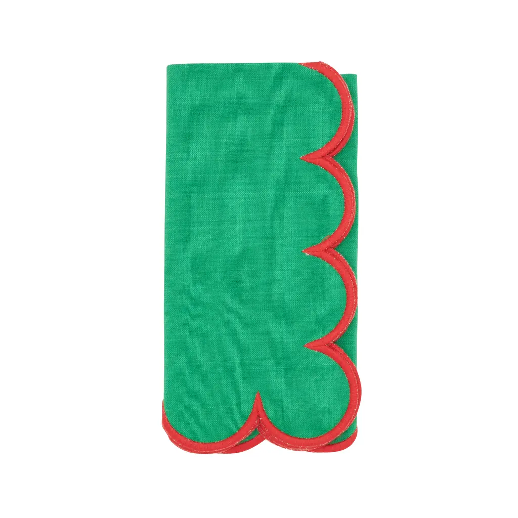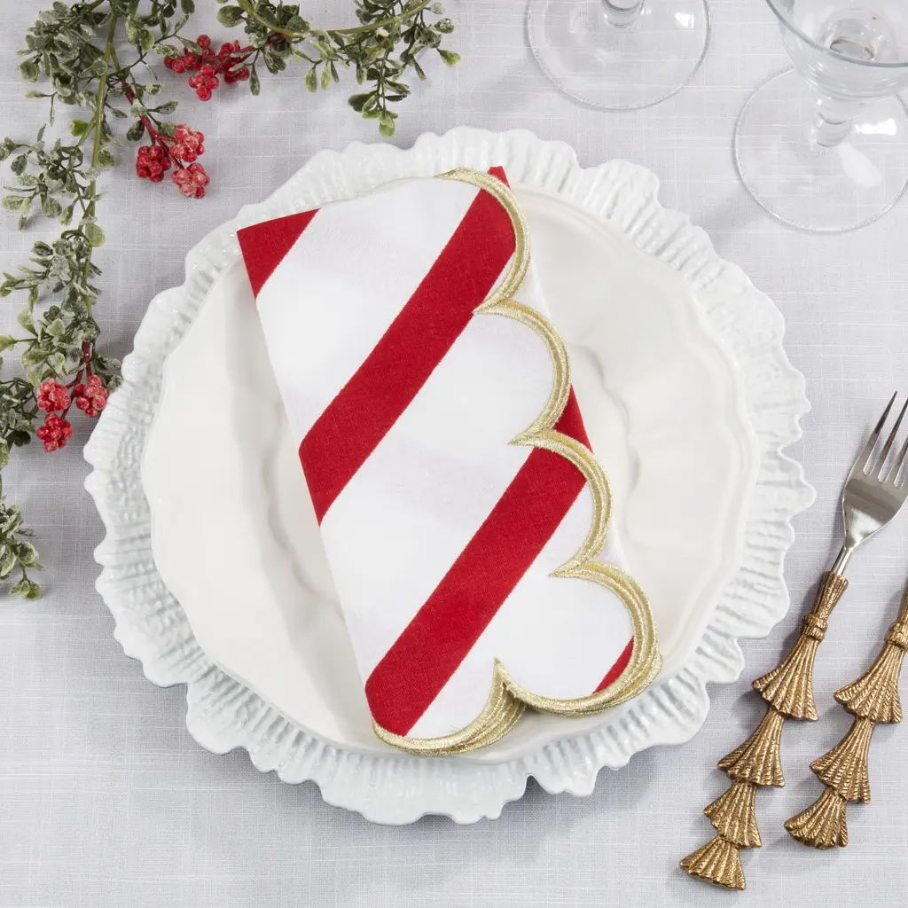Candy Stripe Scalloped Napkin, Set Of 4 - Green