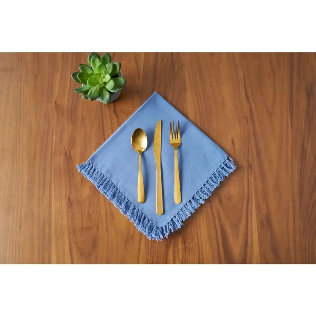 These Navy boat styled napkins set of 4 are ready to take over the dining table anytime. We offer them in boulder, denim, dune, indigo, surf and white color. The beautiful solid colors with the thin fringes around each edges give them a dynamic versatility with an elegant poise. Make sure to check them out!