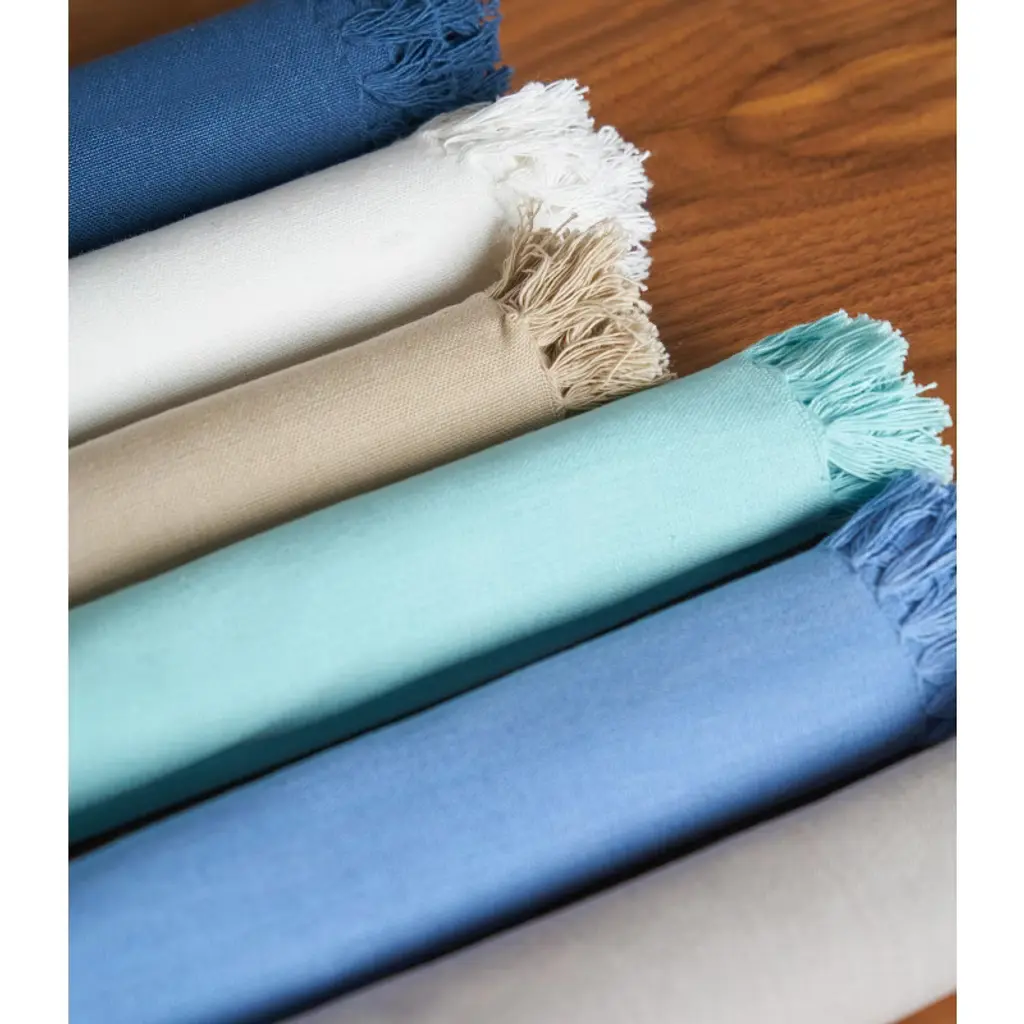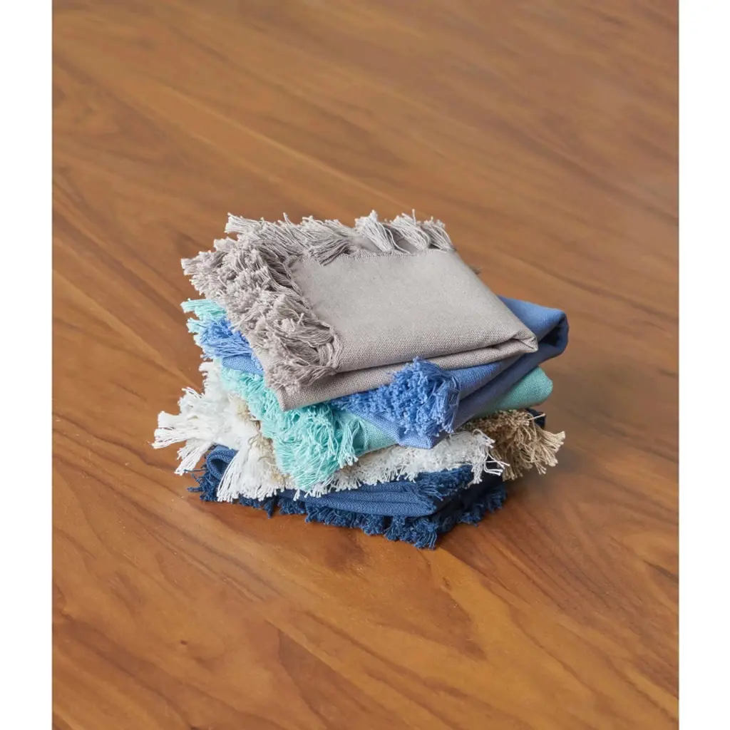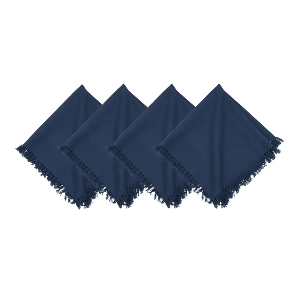 These Navy boat styled napkins set of 4 are ready to take over the dining table anytime. We offer them in boulder, denim, dune, indigo, surf and white color. The beautiful solid colors with the thin fringes around each edges give them a dynamic versatility with an elegant poise. Make sure to check them out!