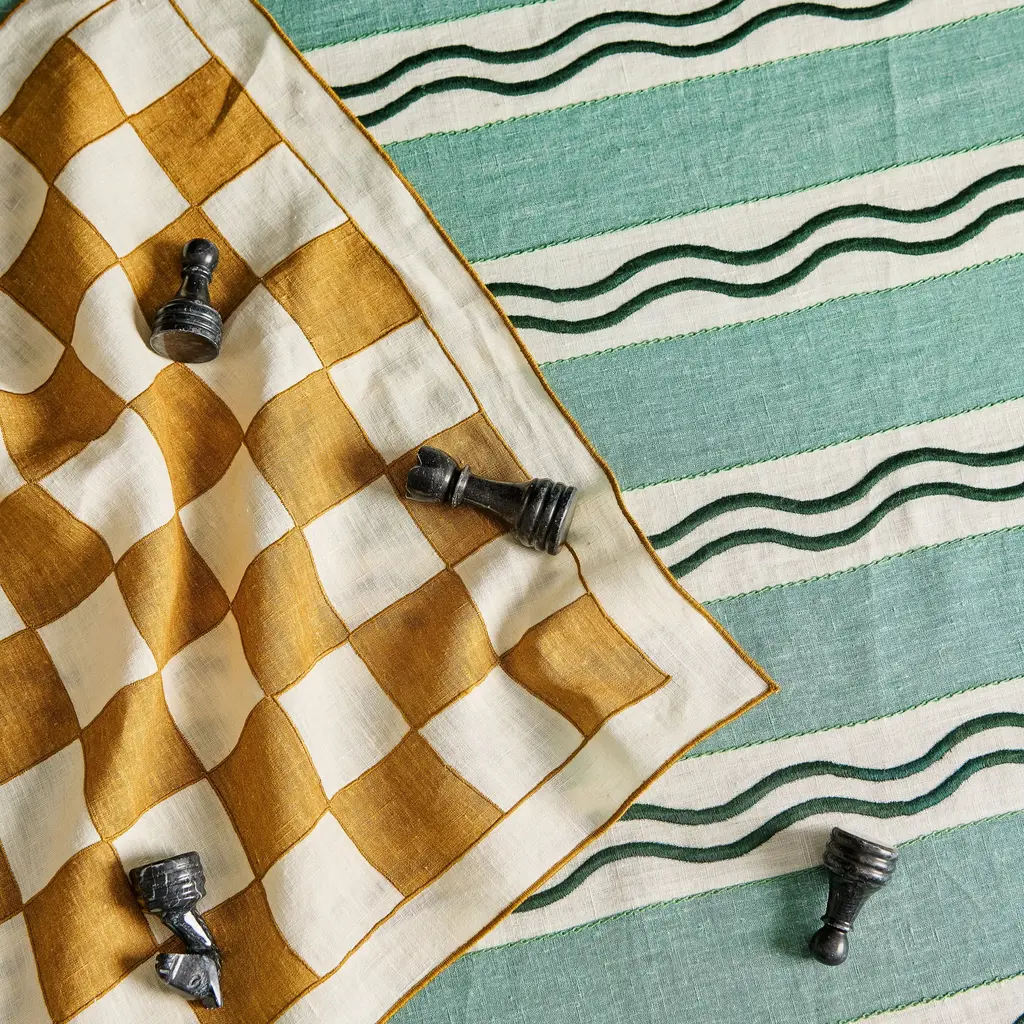 The Chessboard Linen Napkin (Set of 4) from Misette combines refined French inspiration with the luxury of Monaco and Monte Carlo. Each hand-embroidered napkin is crafted from 100% machine-washable linen, offering both elegance and practicality. Perfect for creating a thoughtfully layered, perfectly imperfect tablescape, these four napkins can be artfully mixed and matched. The set is completed with a stylish dust bag, ideal for storage or gifting. Highlights