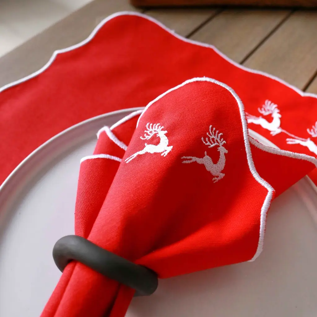 Christmas Sleigh Embroidery Napkins Set Of 2