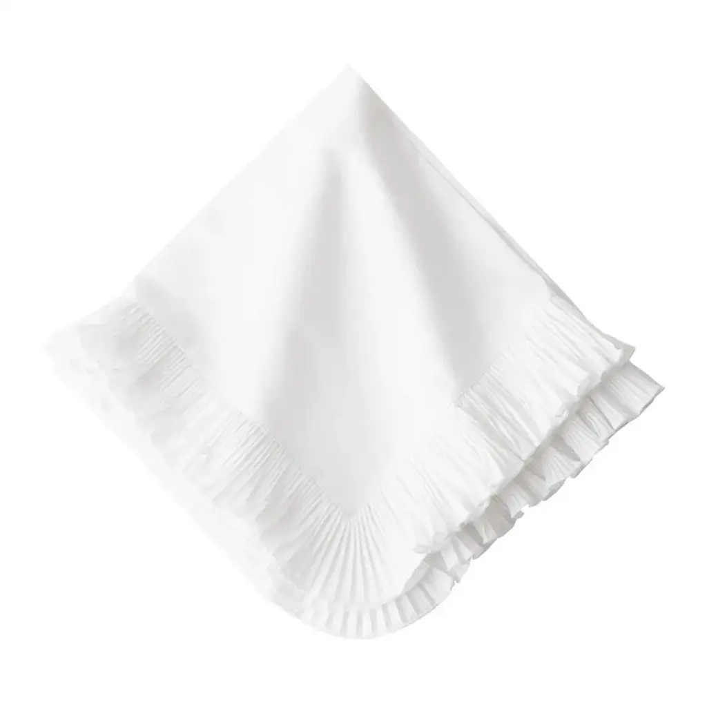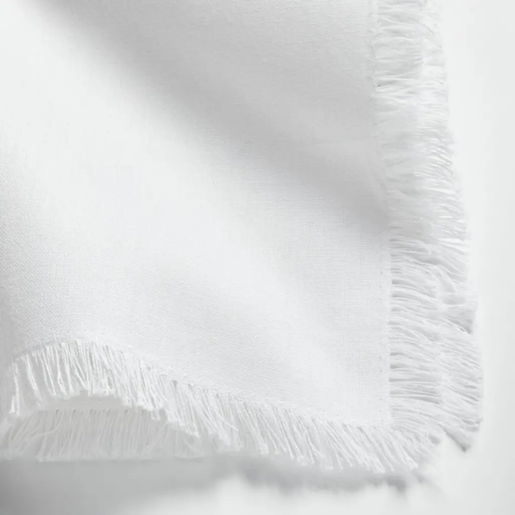 Finished on all four sides with generous fringe, our Craft napkin in crisp white sets the table with a relaxed yet sophisticated flourish. The pure organic cotton napkin offers laid-back style at weeknight meals and elegant dinners then cleans up easily in the washing machine and dryer. For a coordinated table, add our white Craft fringe tablecloth or table runner.