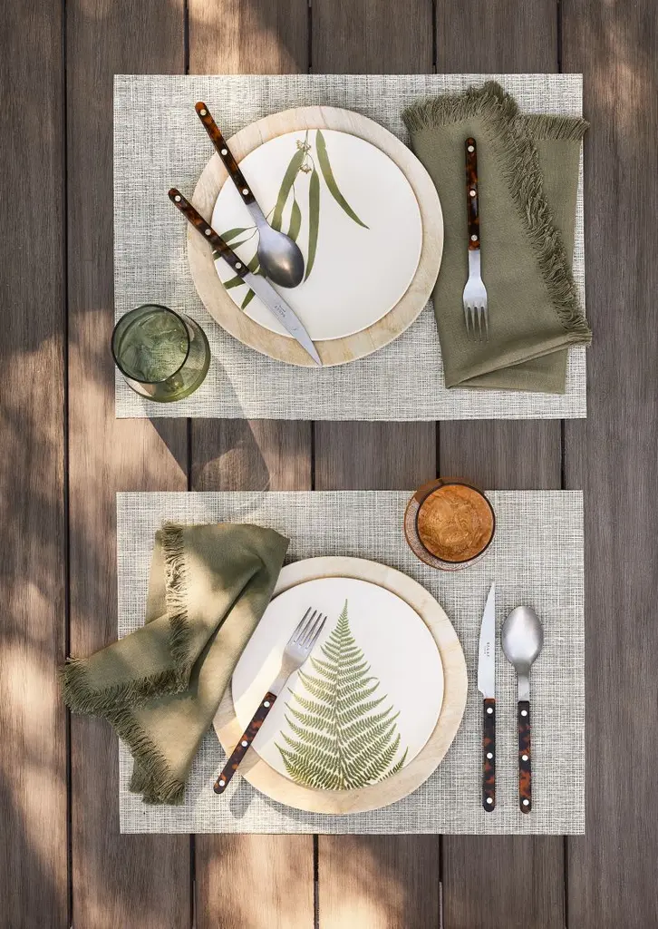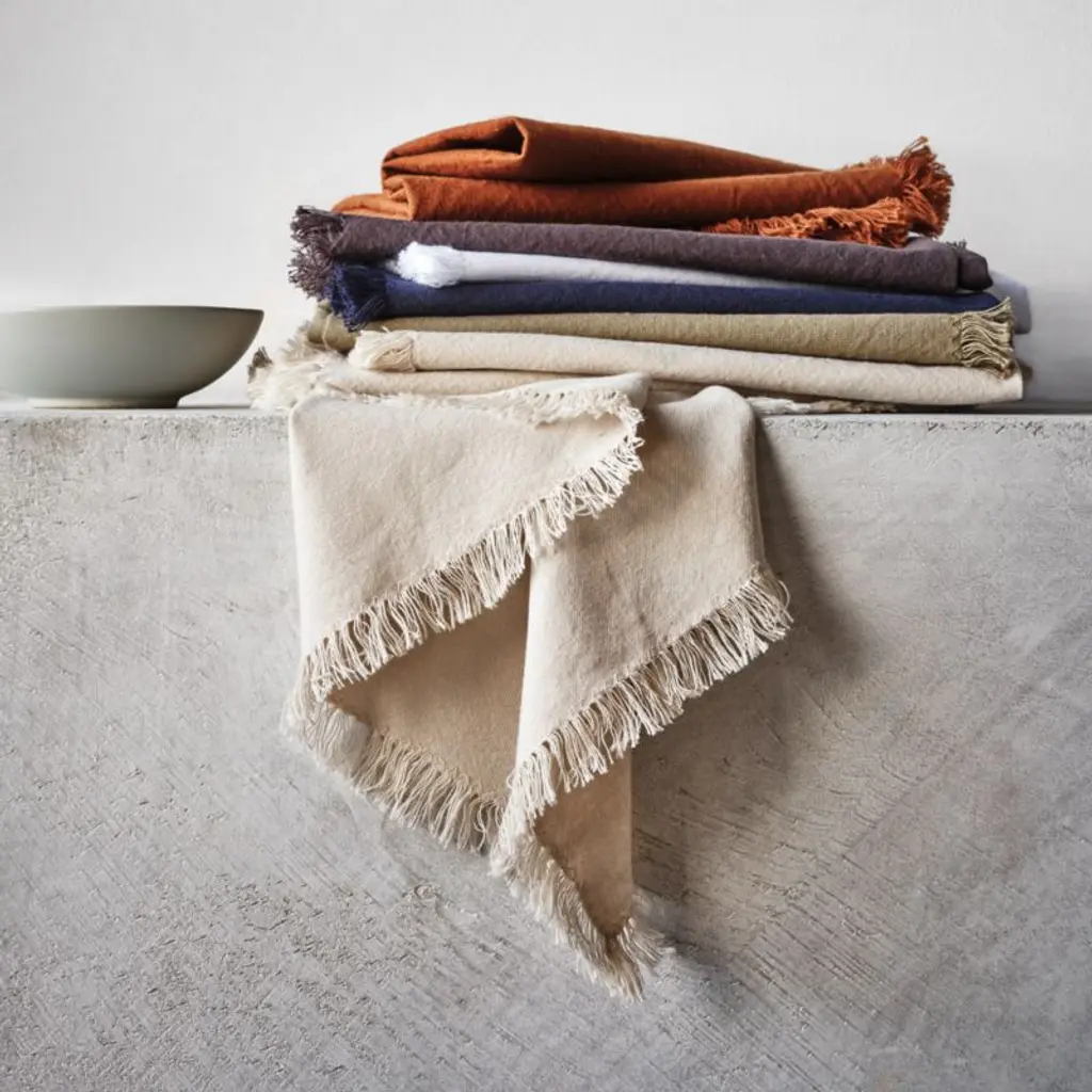 Finished on all four sides with generous fringe, our Craft napkin in sage green sets the table with relaxed yet sophisticated softness. The organic cotton napkin offers laid-back style at weeknight meals and elegant dinners then cleans up easily in the washing machine and dryer. For a coordinated and vibrant table, add our Craft fringe table runner in the same earthy green.