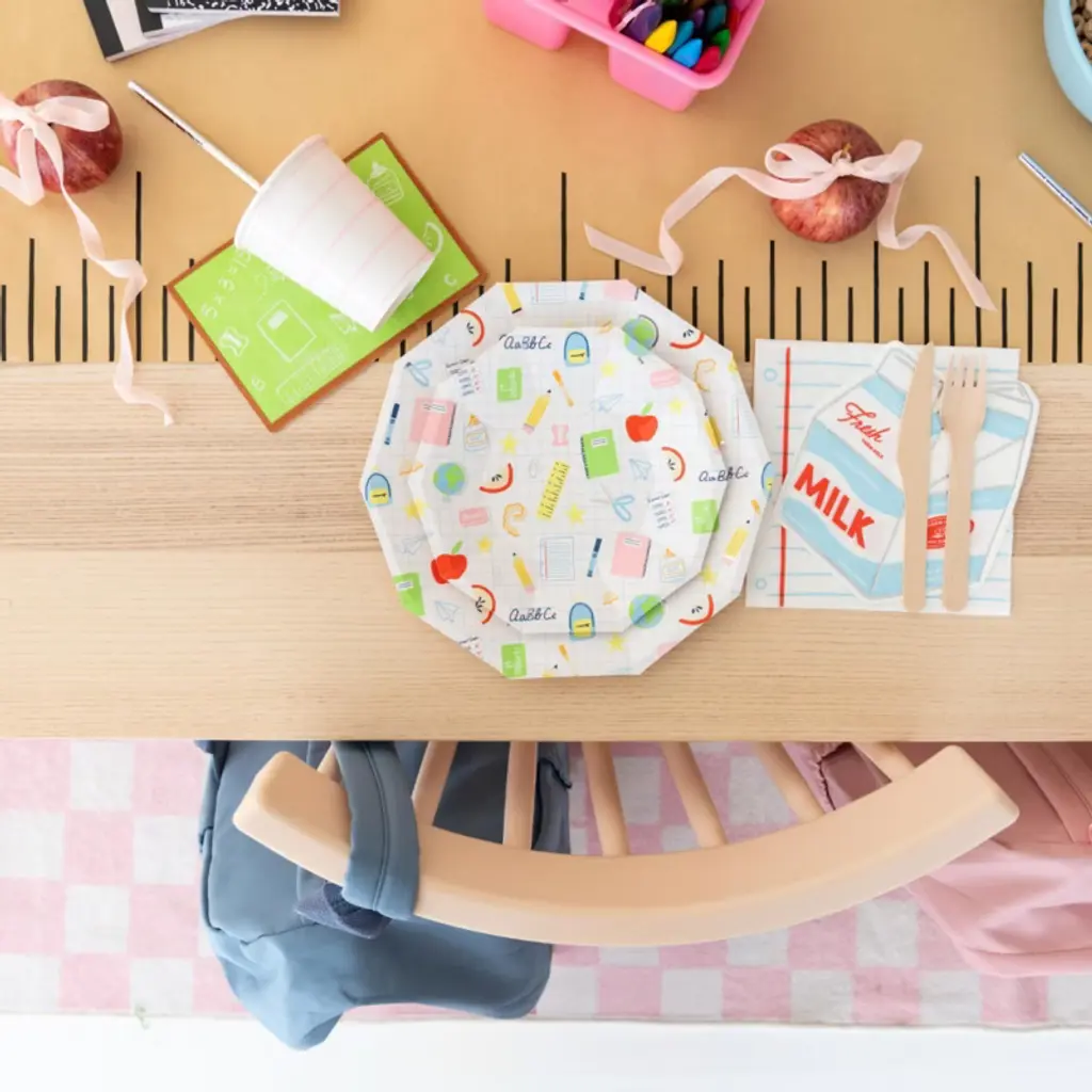 Gear up for a scholarly celebration with our "Smarty Pants" Collection! Infused with an academic flair, this collection is perfect for back-to-school festivities! Featuring whimsical motifs of rulers, globes, and notebook paper, this collection honors the excitement of education. Let's celebrate the joy of learning together with these brainy party essentials! Illustrated by Daydream Society Package contains 16 napkinsEach napkin measures approximately 6.5 inches wide and 4.5 inches tallNot safe for microwave use