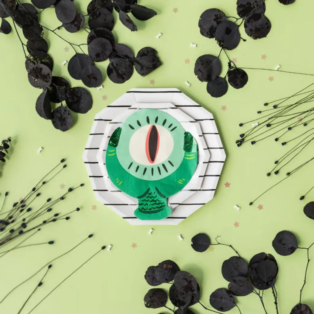 Get ready to serve up some spooky fun with Eye See You collection! These napkins feature a creepy eyeball design and claw-like edges, perfect for Halloween parties. With their cute and quirky style, they're perfect for any fan of fun and unusual home decor. (Get a plate...if you dare!) Illustrated by the Daydream SocietyPack of 16 paper napkinsEach napkin measures approximately 6.25 inches wide and 7.5 inches tallNot safe for microwave use