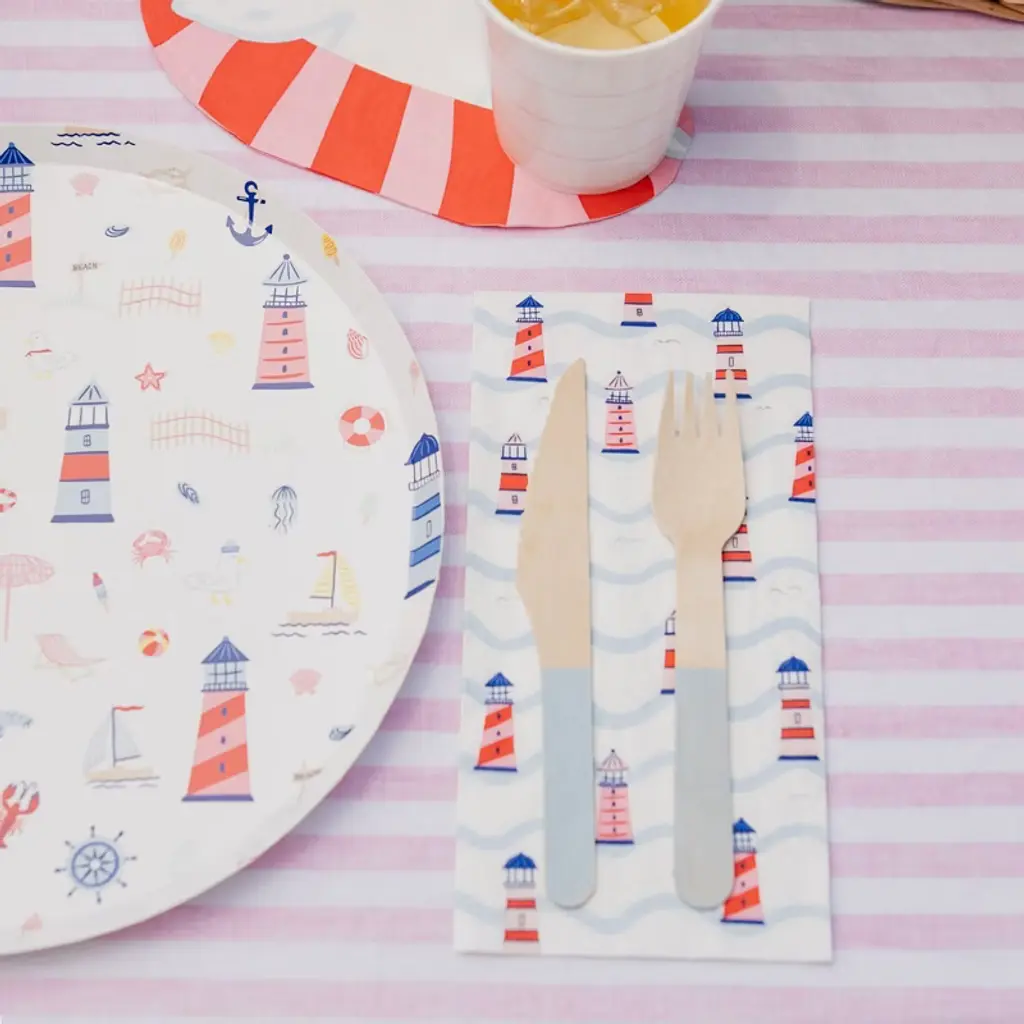 Set sail for a summer of splashes, sandcastles, and sea breezes with our Seaside Collection! Featuring charming coastal illustrations, these Seaside Guest Napkins bring nautical fun to your beachside picnic or sunny-day celebrations! Illustrated by Daydream SocietyPack of 16 guest napkinsPaper NapkinsMeasures 8" x 4.25" foldedNot safe for microwave use