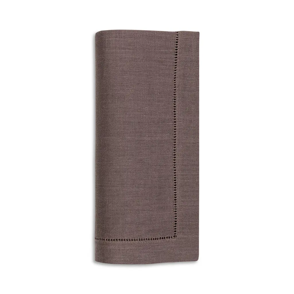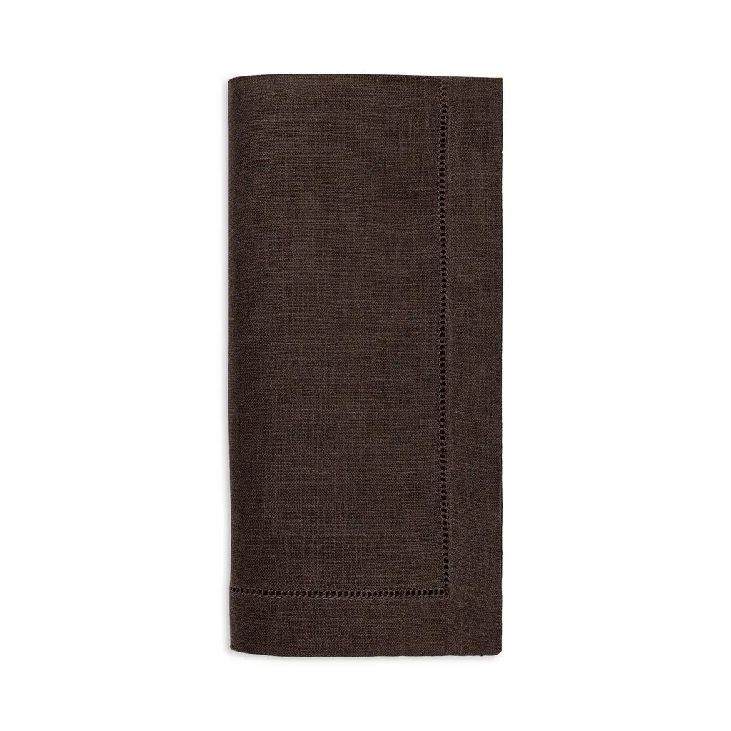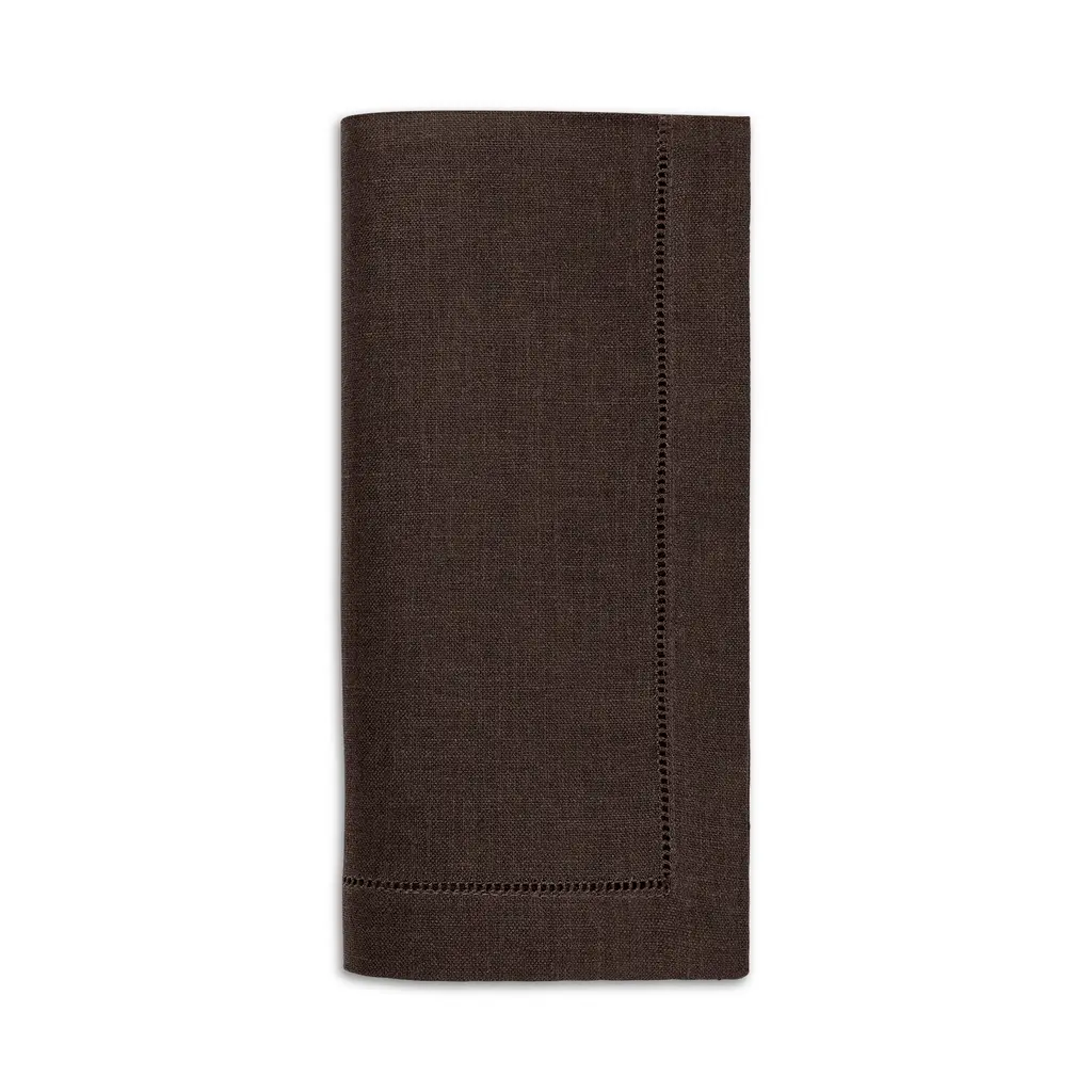 Dinner Napkin With Hemstitched Border, Set Of 12 - Chocolate