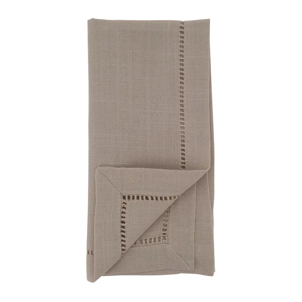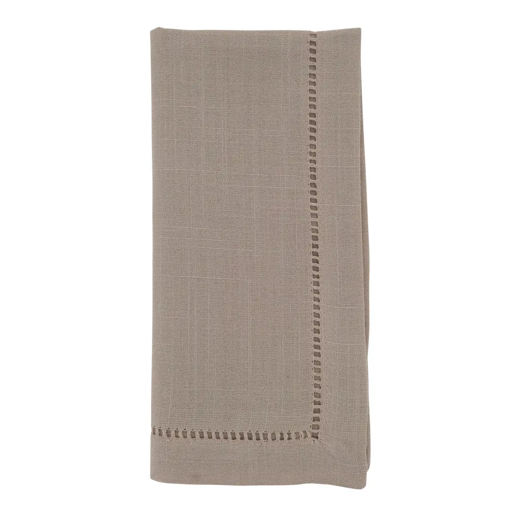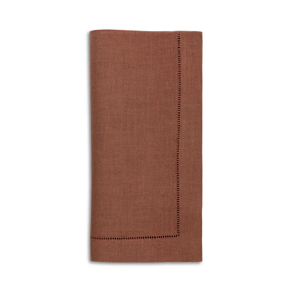 Dinner Napkin With Hemstitched Border, Set Of 12 - Chocolate