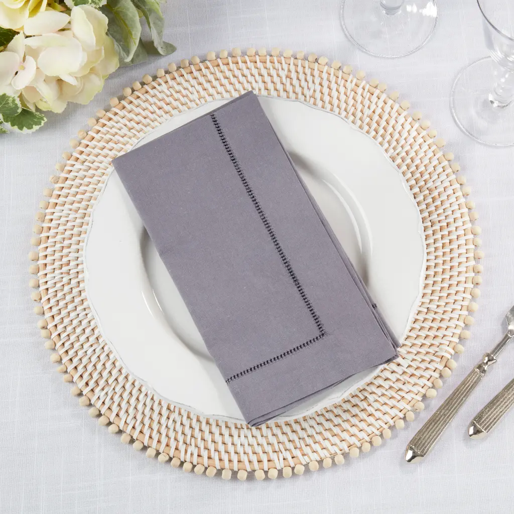 These Hemstitched Napkins are a great addition to your tabletop, whether you are entertaining guests or simply hosting a family lunch. They coordinate perfectly with both solid colors as well as patterns or prints. Perfect for both indoor and outdoor use.